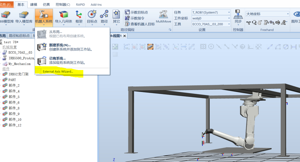 机器人与导轨系统布局创建系统完成后,想要实现机器人在导轨上运动的话,如何实现呢?最好的话是通过rapid语言来实现