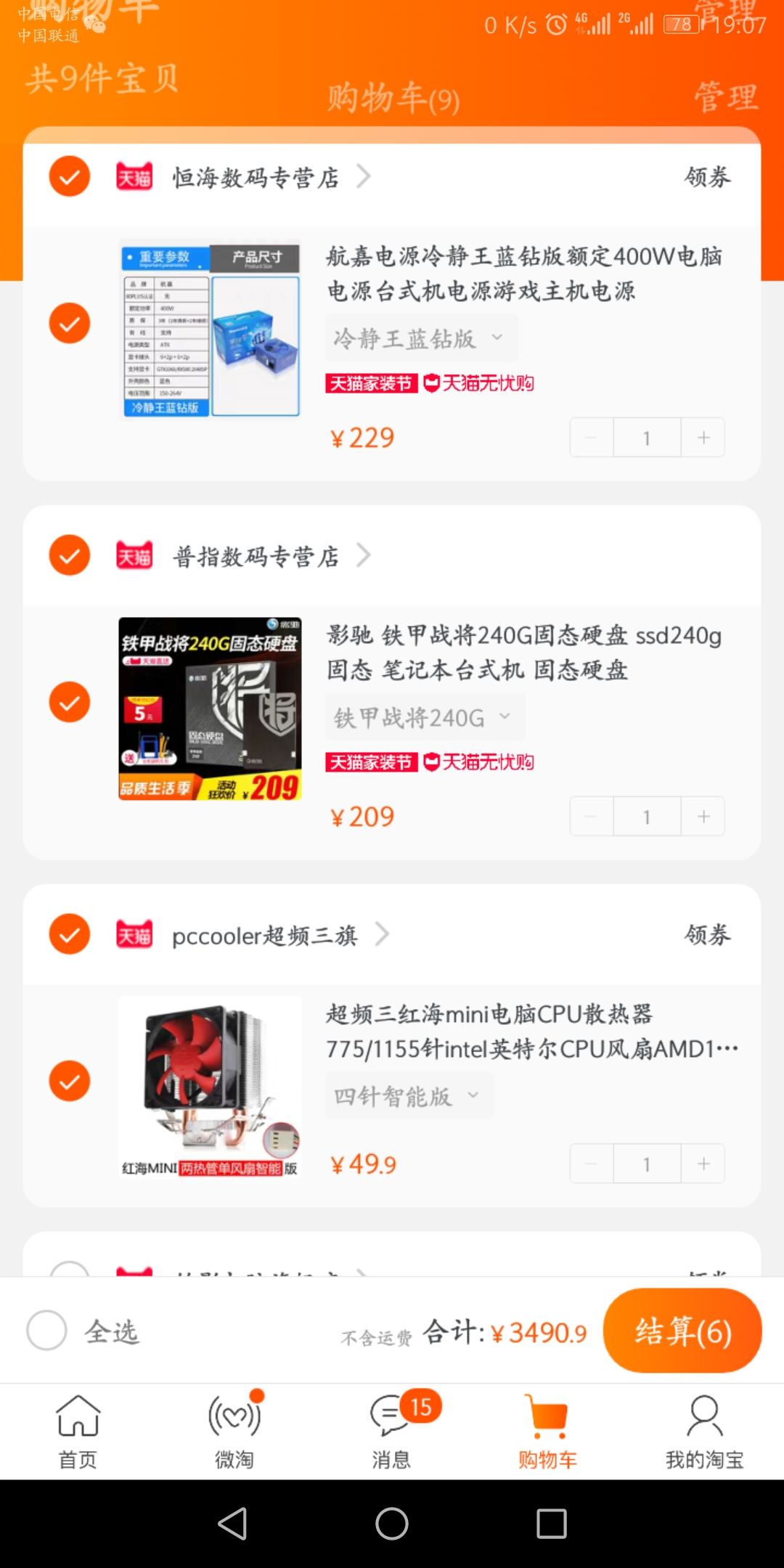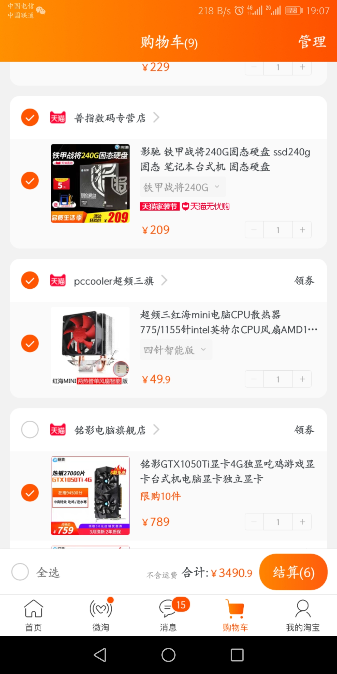 年前配的一套,小白第一次装机,配置如下,总价3400不带显示