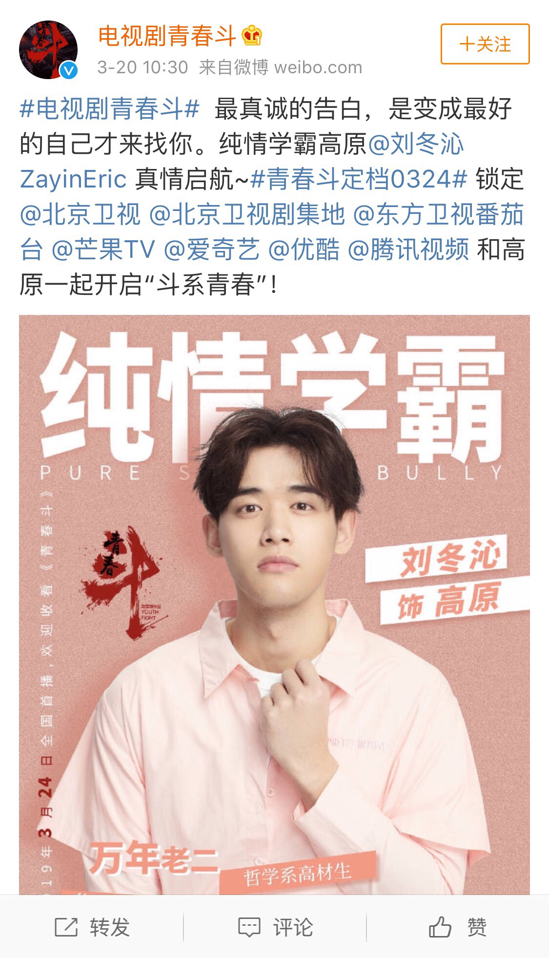 趁热打铁,围观一下“电视剧青春斗”原博主(没错,就是188“被迫”转发了好兄弟那条的原.博)。
