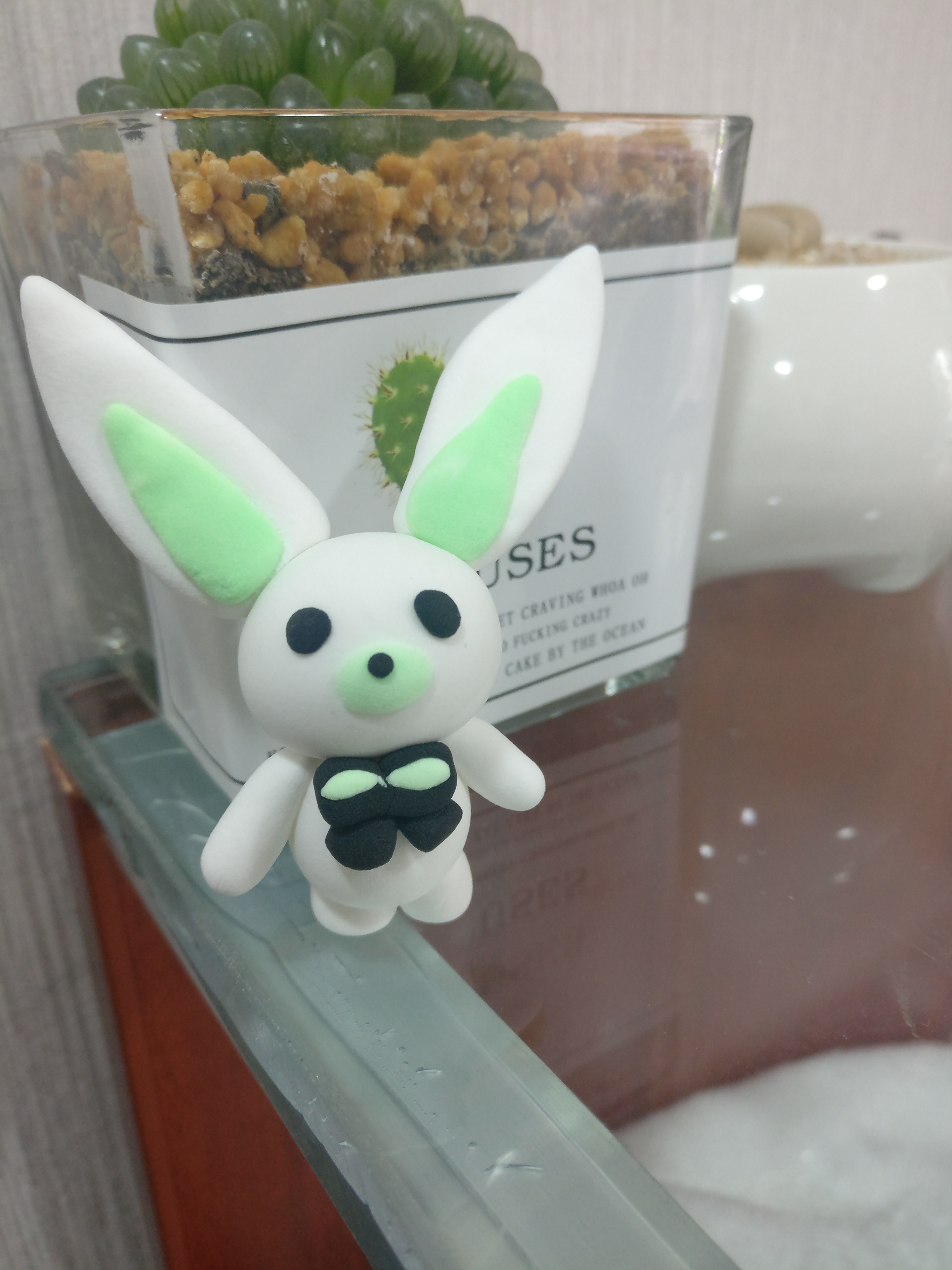 话说这只兔子,某站MMD里的黑毛衣麻子抱的,楼主照着视频自己用粘土做了一只。。