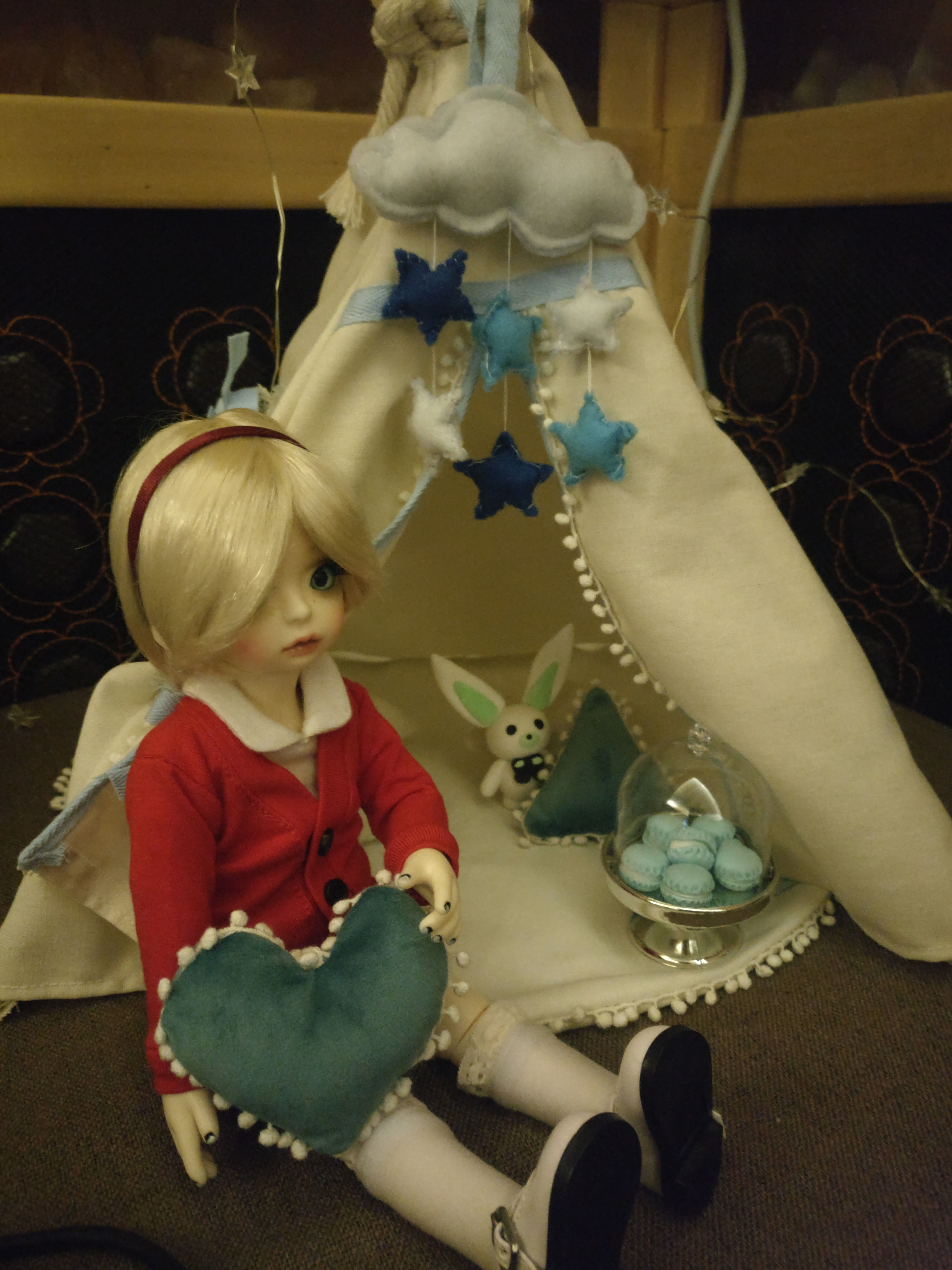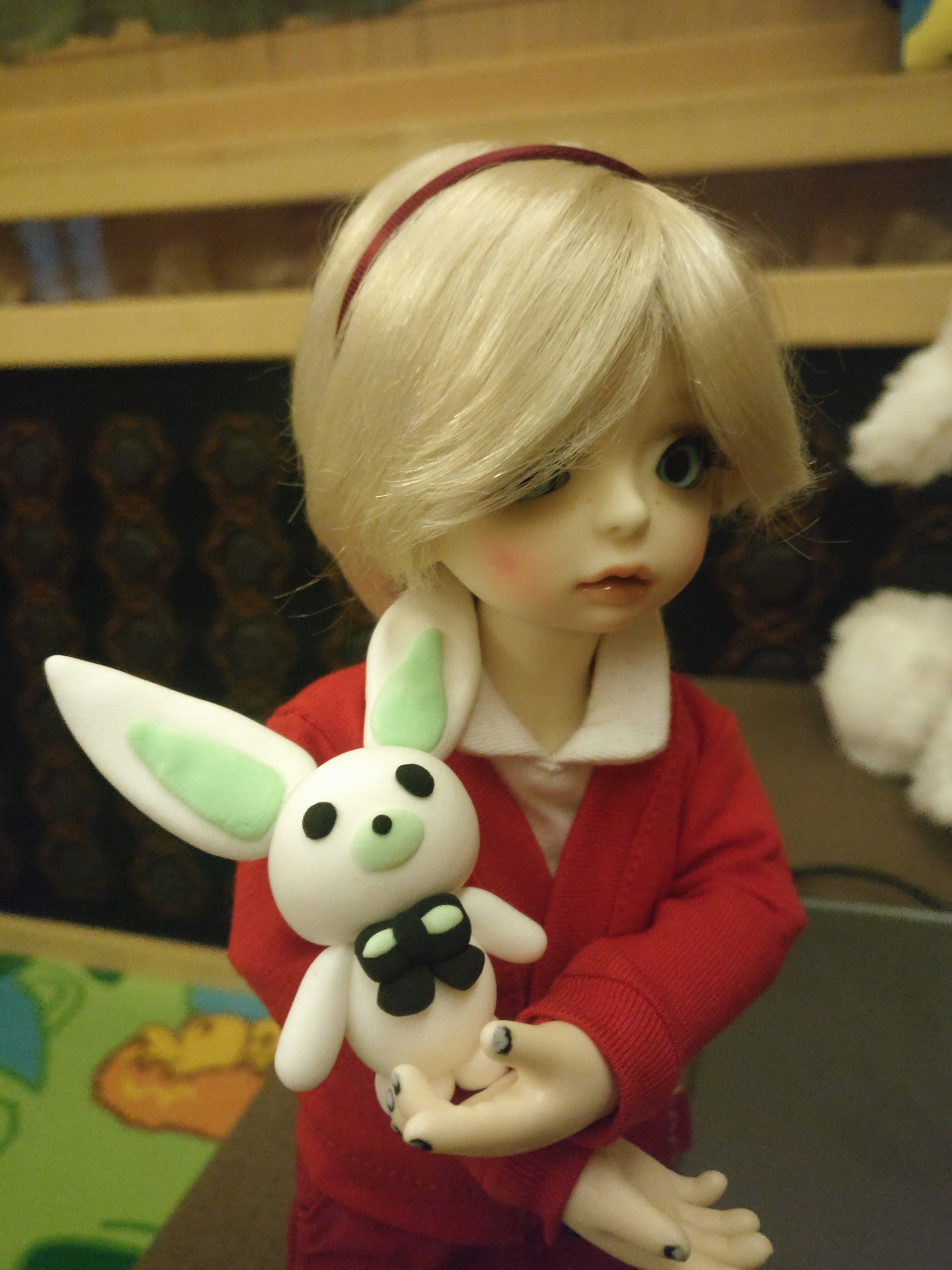 不知道怎么中毒得这么腻害,等了好久好久的娃娃终于到了。然后东拼西凑的凑配件。小崽子就这么诞生啦。