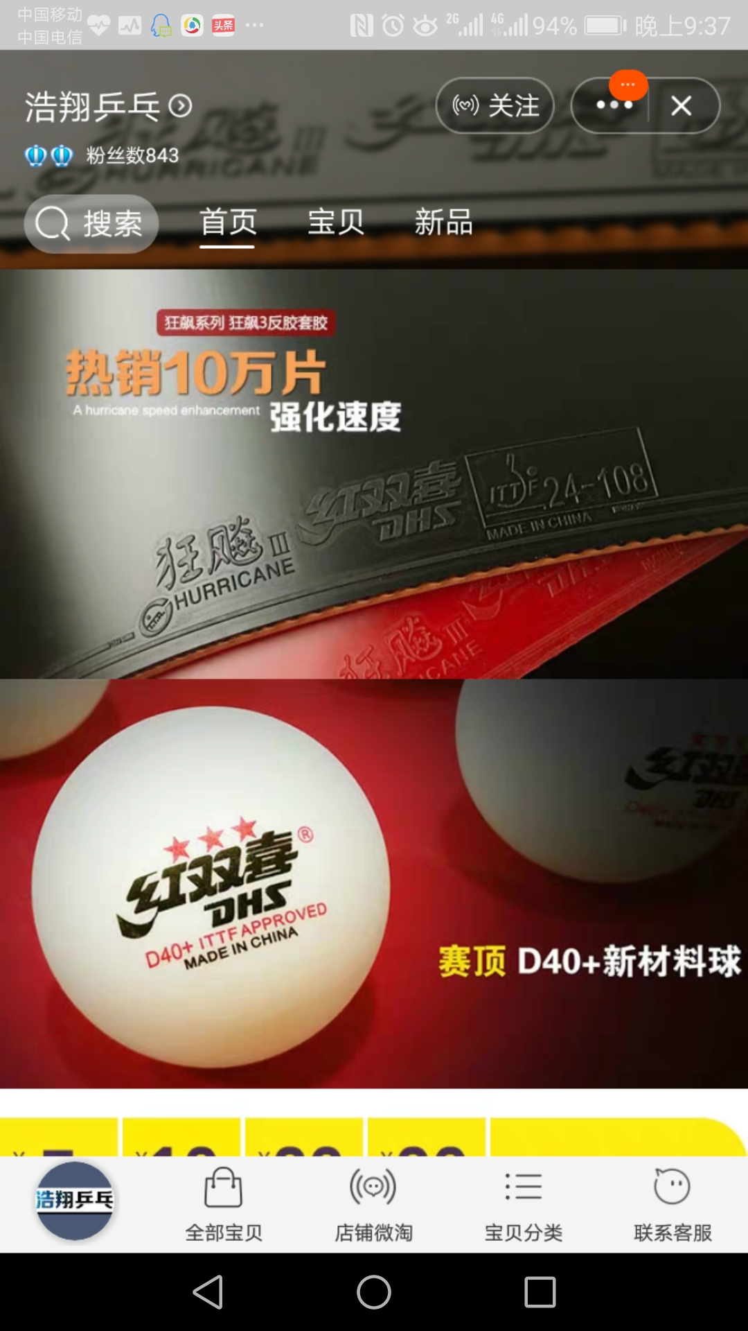 以前没有在他家买过东西,前段时间在他家买了两盒红双喜D40+乒乓球,一开始也没注意,放了段时间,没想到拿出来一打,球直接跳动不规则,老是对不到点,或者被拍子撞飞!,试了几个球都这样!再一试球友的球,就没有这个现象,明显假货无疑!跟他沟通一开始不承认,后来直接没声音了,也不理我了!黑店一个!希望广大球友们注意!