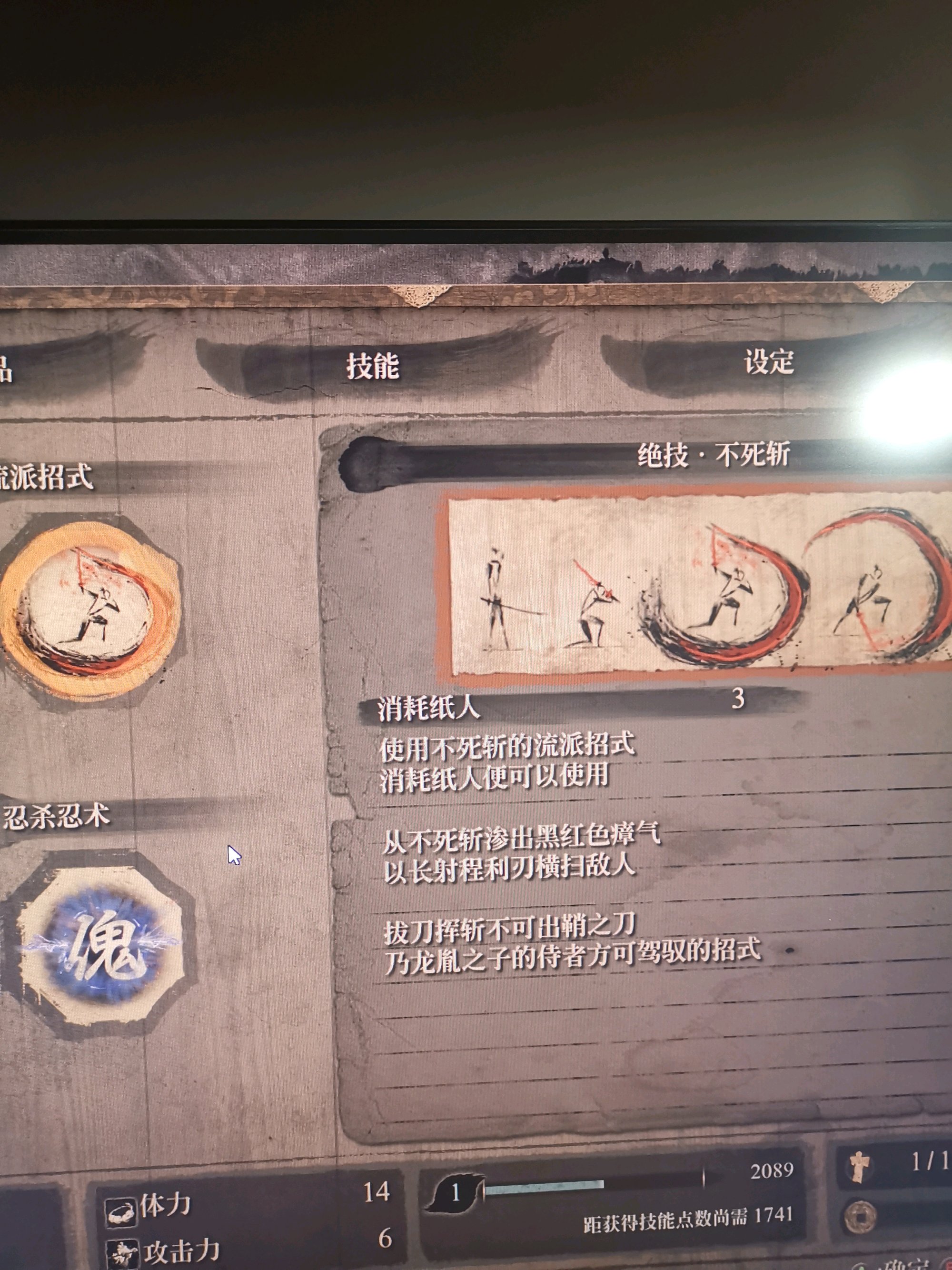 二次猿的叫唤可以拿流派技能里的绝技不死斩直接一招打断,我试出这个之后打他简单多了