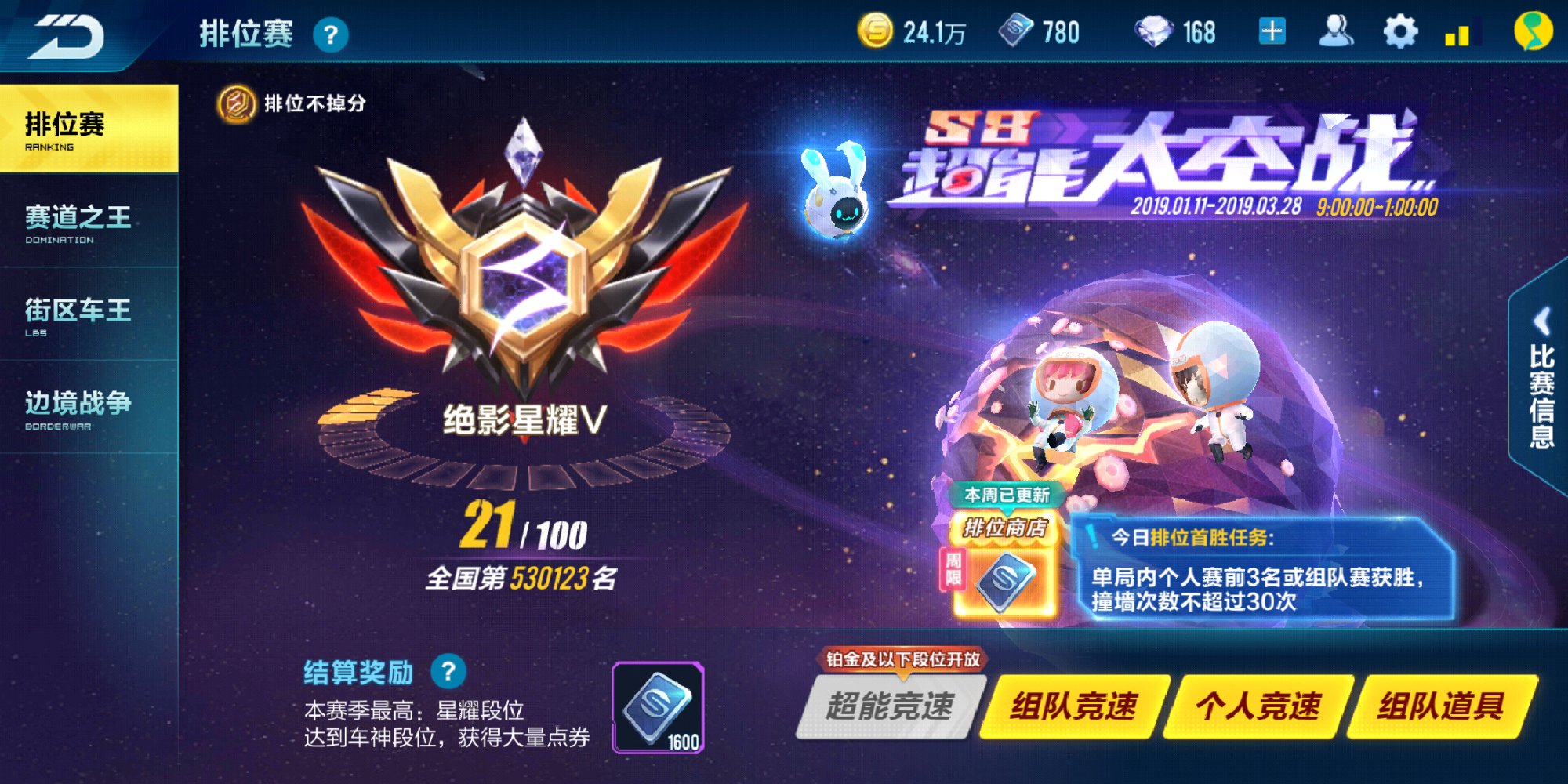 二月份我还在为了上钻石而烦恼,而三月份有了蓝影主宰的我已然比之前强了一些,钻石车,还是强于点券车。