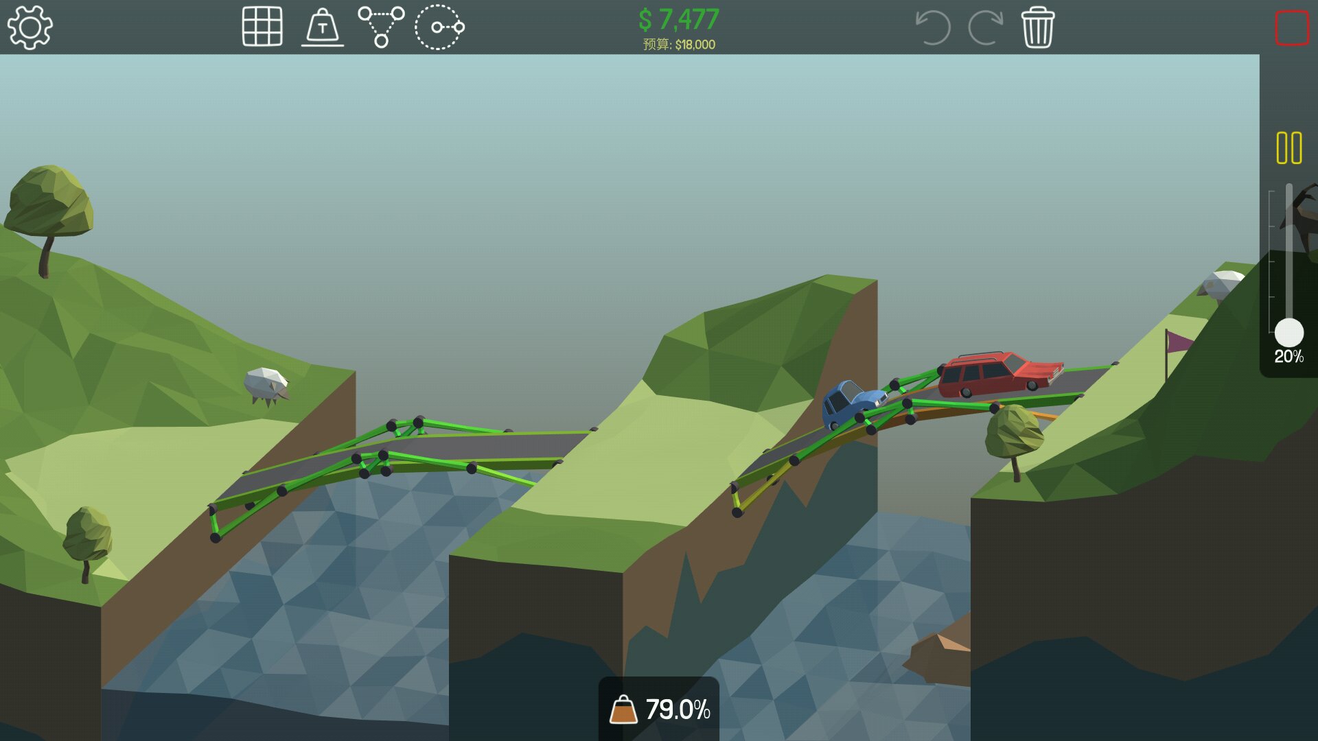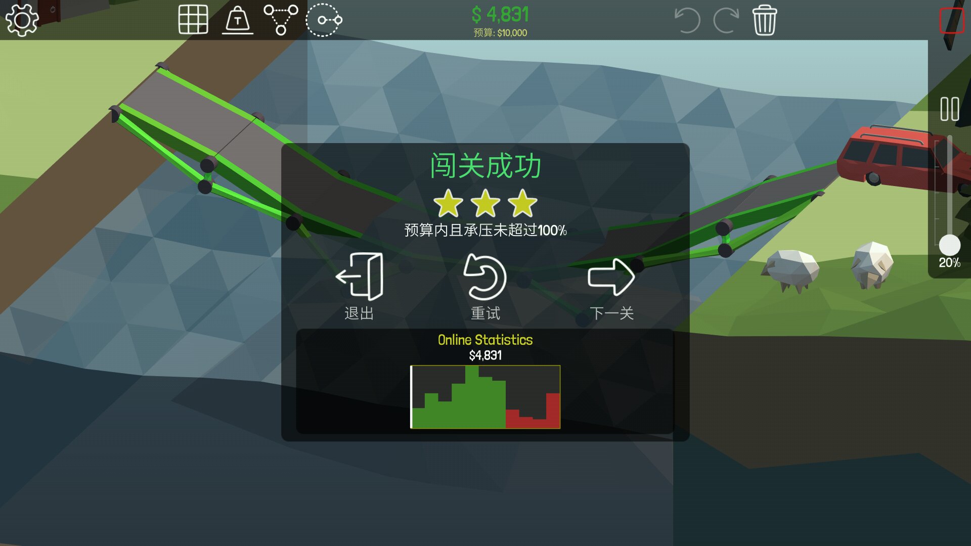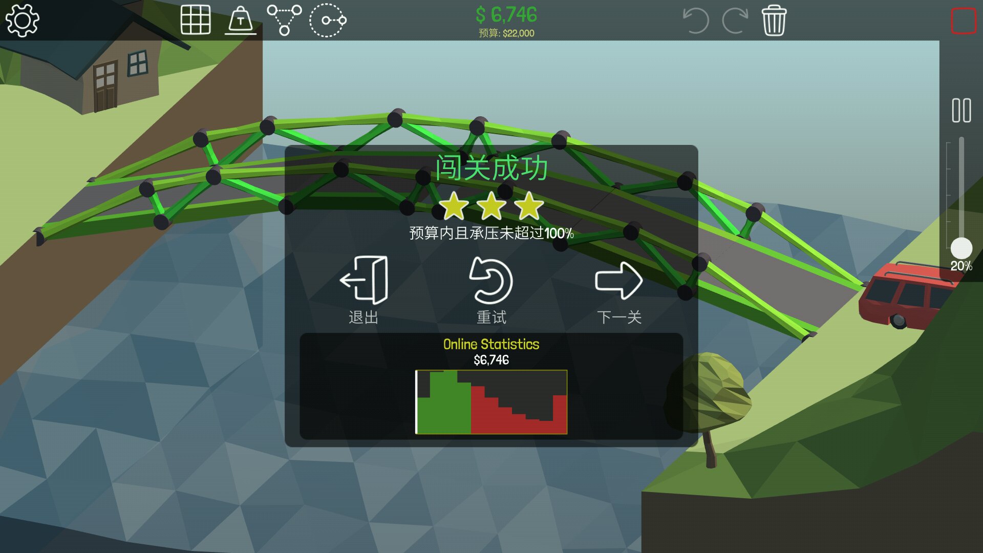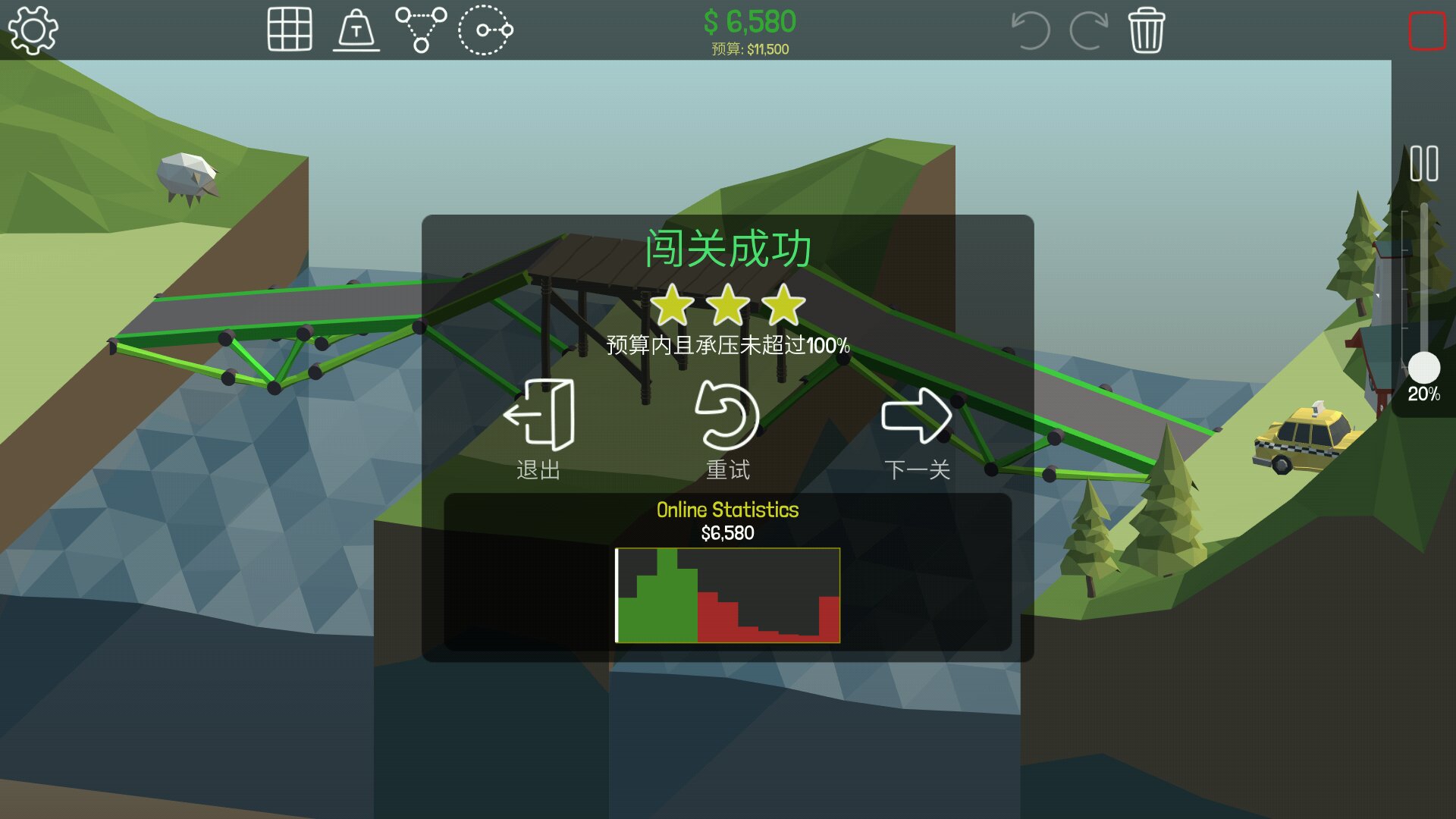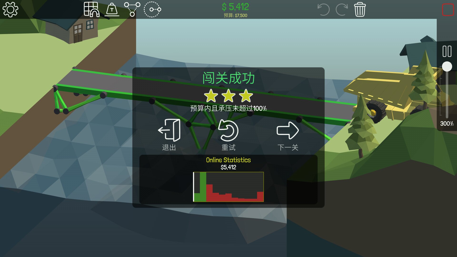 没有通关,也不可能通关。只是对部分关卡中规中矩的三星过关方案进行挖掘和优化。摈弃悬链桥方案(因为没有挑战而无趣)