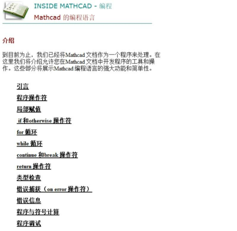 Inside Mathcad 的Program,即编程部分,共有8章38节: