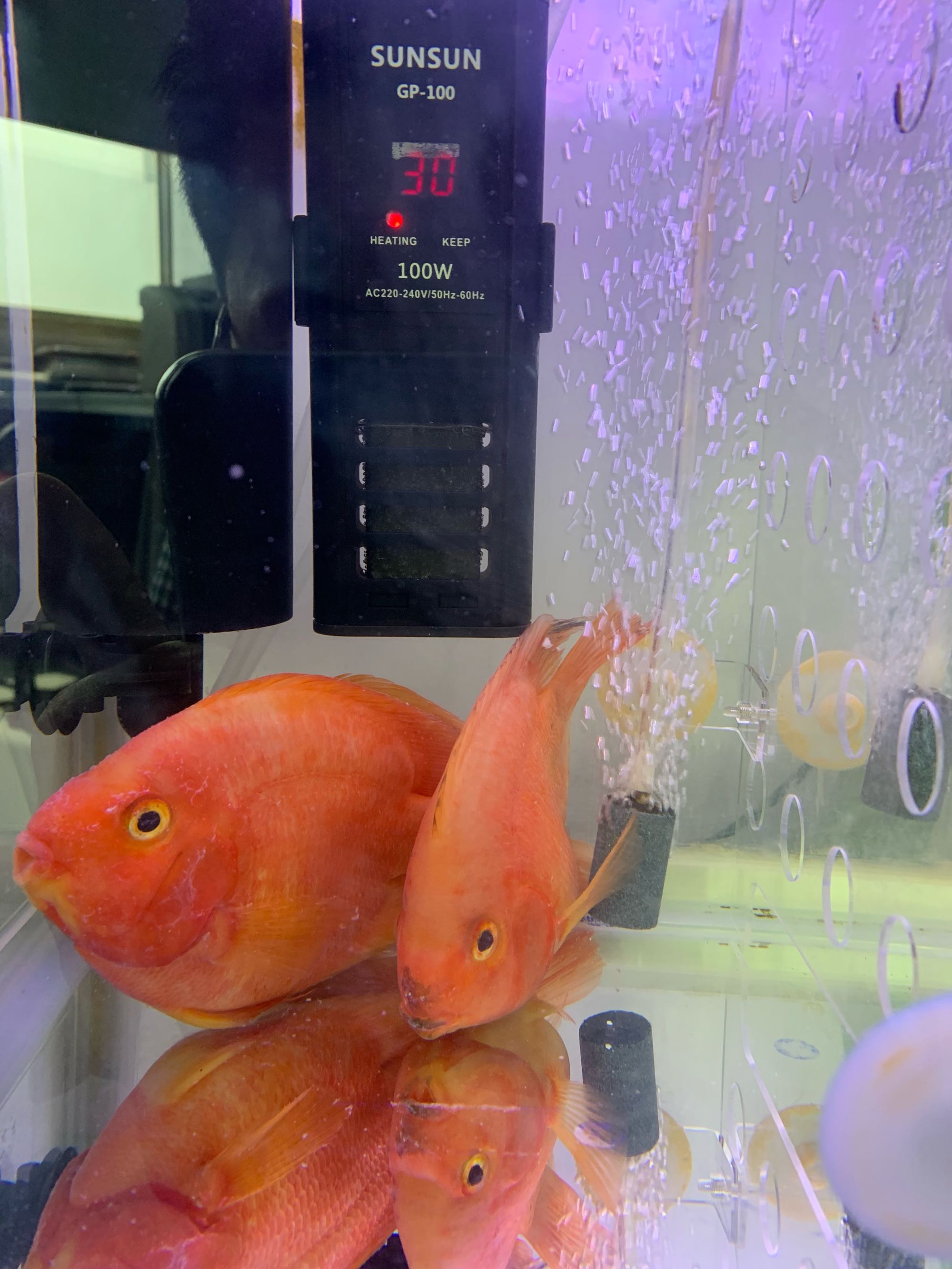 过滤是普通的缸外过滤桶,最近升温30,用的盐和硝化细菌。可能是氨氮值太高了,最近喂的鱼食没吃,估计污染水质了,早两天换半缸水吗😳