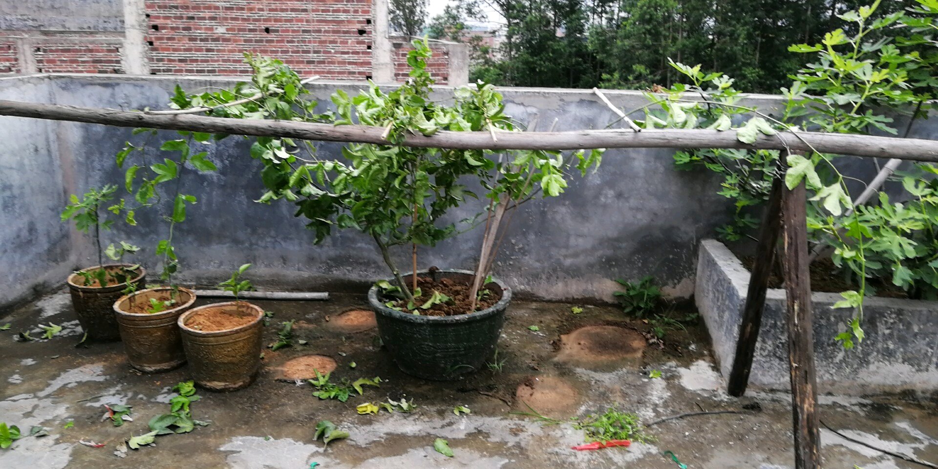 本来全都垂在地上,昨天搞了简易型的搭起来了,就上年吃过两三个过,这样吊起来应该会好长点吧