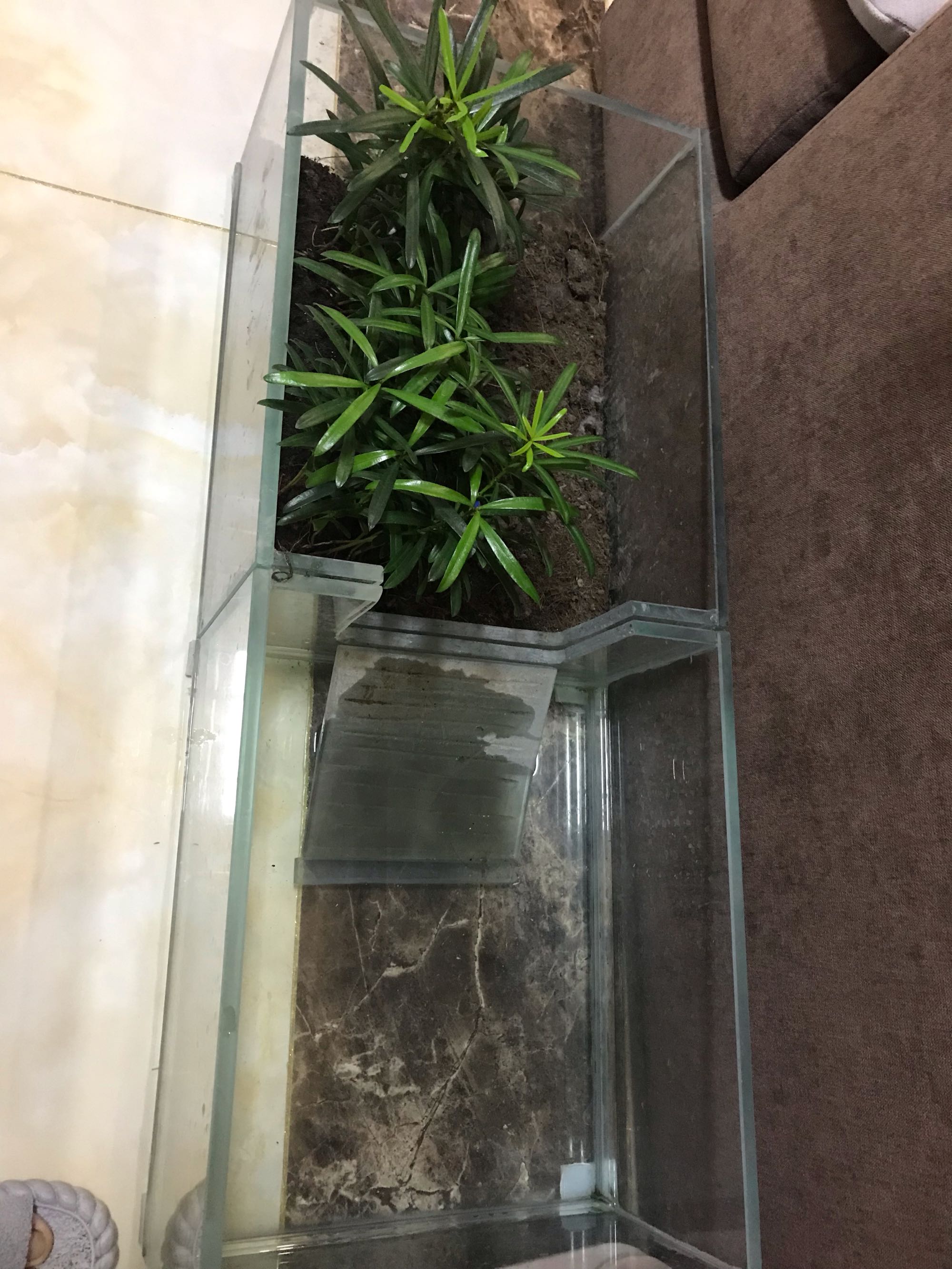 自己做的水陆分离缸,买的另一只花龟还在睡。