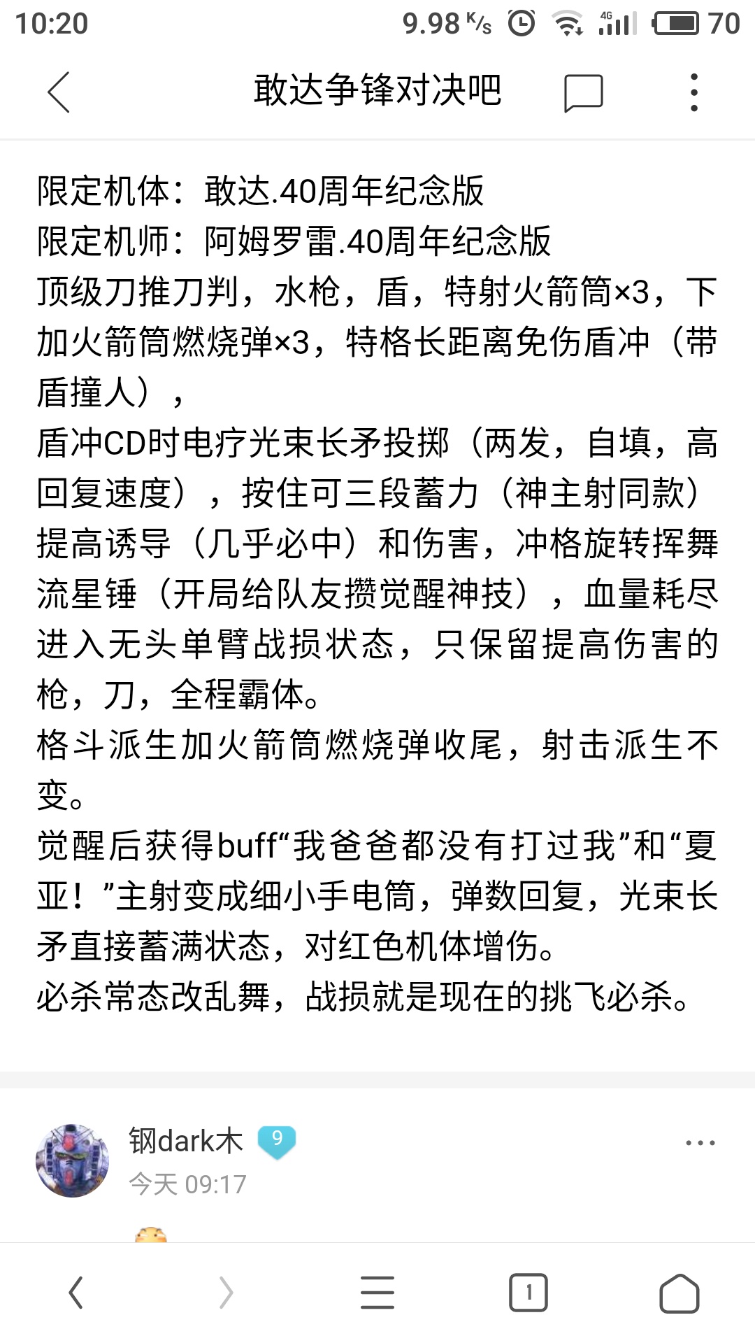 铁奥技能基本现成,刀,枪,盾,特格类似雪崩的霸体四刀冲,特射类似白卡的圆形威压,类似百式的无头复活,给个被动条,条满了加机动性和气槽buff,死了按槽剩余量给复活血量,如果在buff状态下死的按最少血量复活。复活只有刀枪盾。