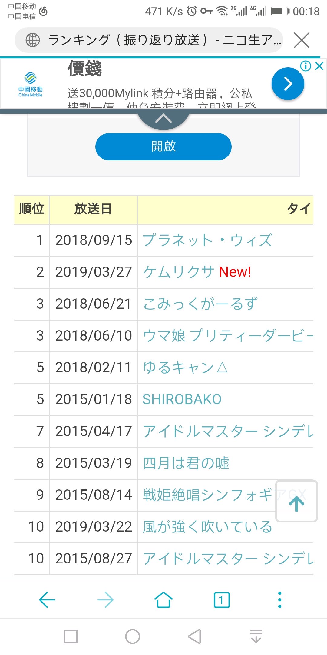 行星与共,赛马娘,摇曳露营,还有一个是?