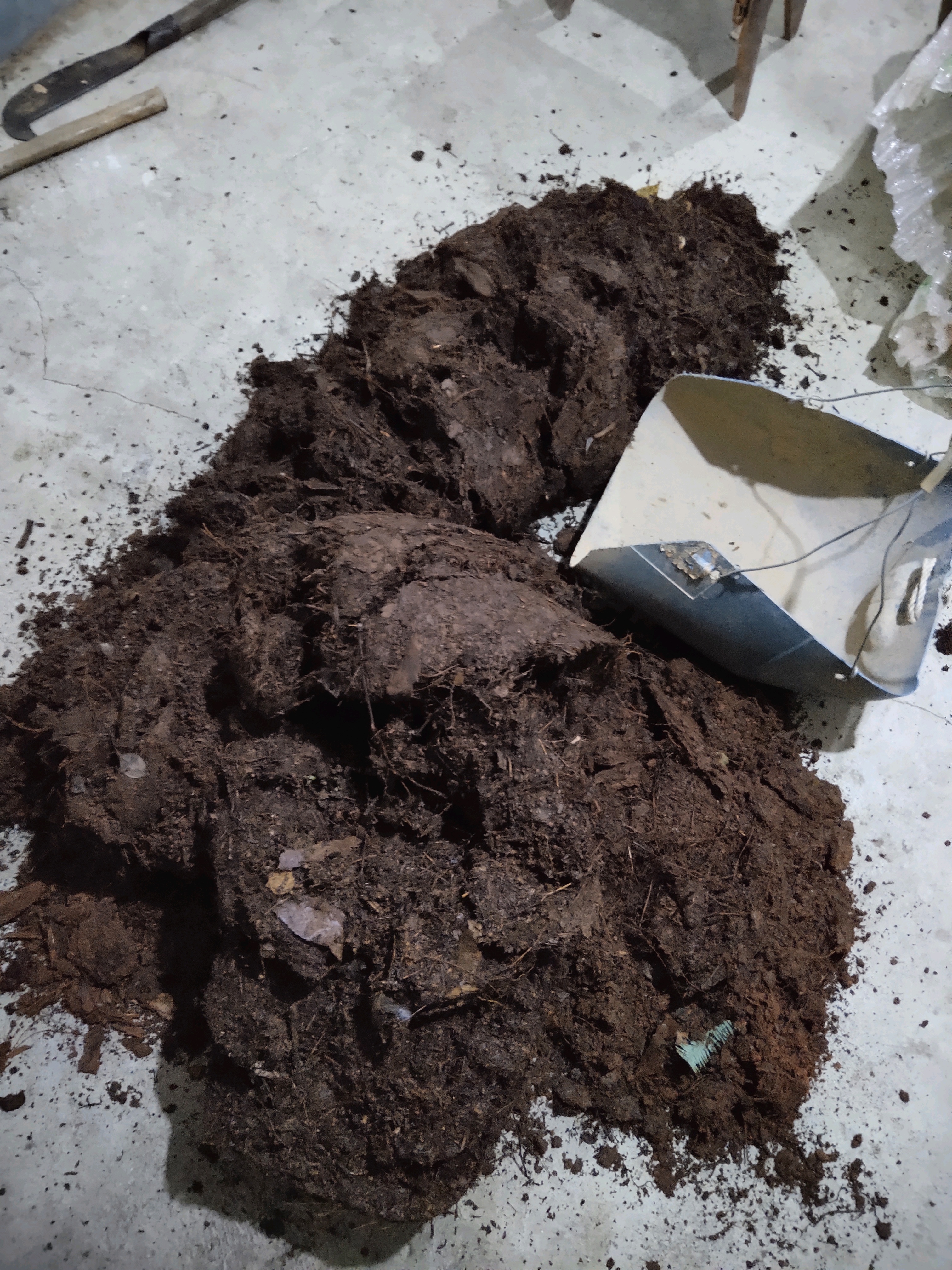 今天下午有空,本是抱着进山拾捡松树皮的想法,结果看到腐殖土也很不错!最后松树皮弄了两大袋,腐殖土挖了三袋!到家在车库整理,发现树皮真的好难掰,手都起泡了!有些树皮地上捡的,有些直接从老松树上掰的!回来了还想着这些树皮该怎么腐熟才行??但忽然醒悟,为何不直接捡已经自然腐熟好的树皮![[汗]](/static/emoticons/u6c57.png)