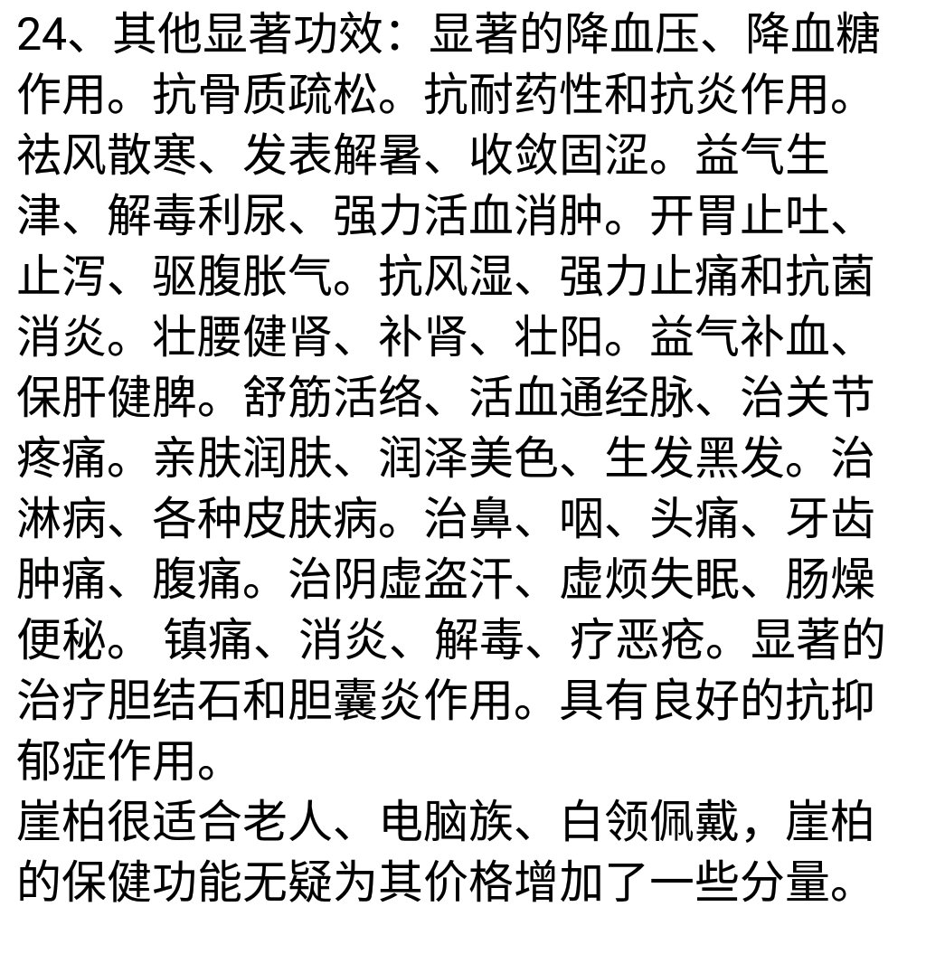 据中国中医研究院、中国科学院、日本权威医疗专家罗蒙尔特和只木良也博士测试证实,崖柏的主要成分是荟萜、柠檬萜和黄酮类、维生素、矿物质等抗氧剂。崖柏精油含雪松醇,能透过皮肤被人体吸收,可消炎解毒止痒。其人参皂甘能促进细胞新陈代谢,使免疫蛋白增加,调节呼吸和中躯神经系统平衡,增强人体的