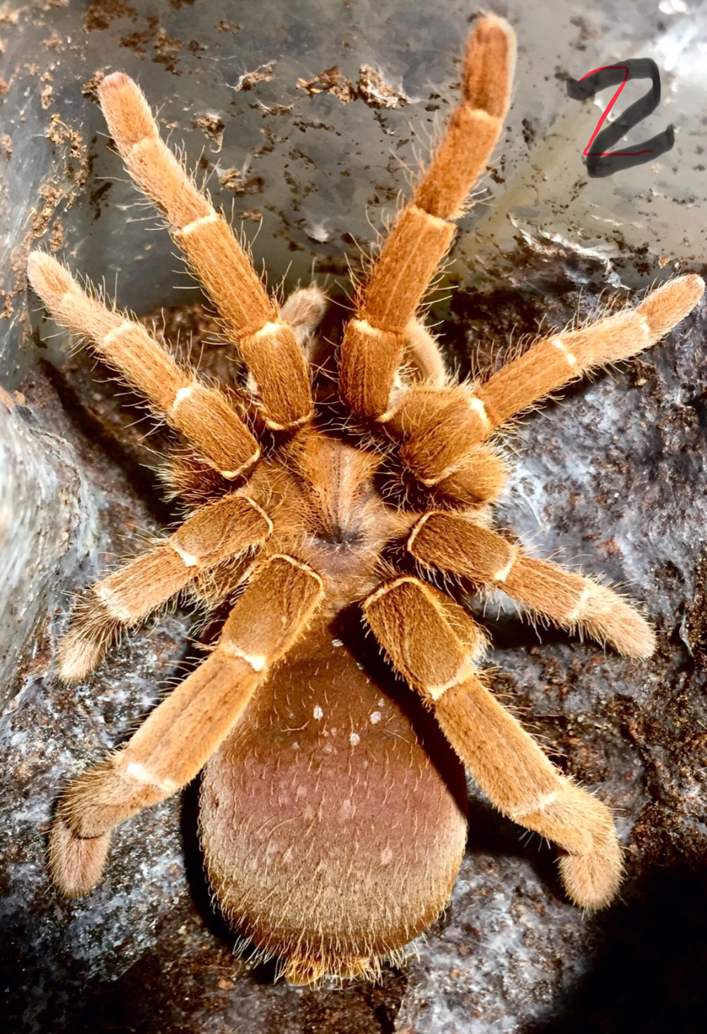 1.墨西哥金背,五年前入手时5厘米,现在不到8厘米,食量大捕食猛,最喜欢看它捕食跟自己一样大的杜比亚,沙漠品种为了生存也是拼了,不过亲测当它肚子很大的时候,面对大食物还是会怂,这个时候给小的它还照样吃,五年中褪了三次皮,当初跟它一般大所罗门如今已过20厘米了。这货最大优点就是不踢毛。