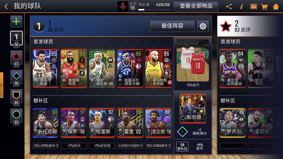 跟着活动走,疯狂三月活动合90总评球员补强,攒金币买技能球员。关键球哈登和压哨马布里用来打实时竞技。慢慢摸索吧