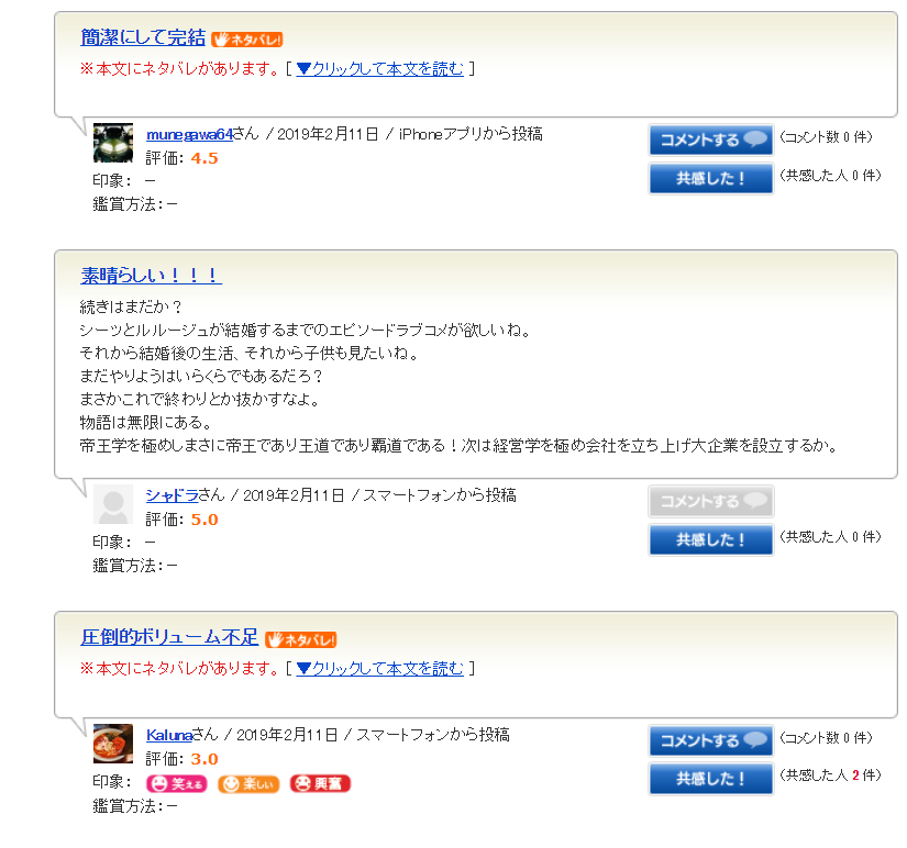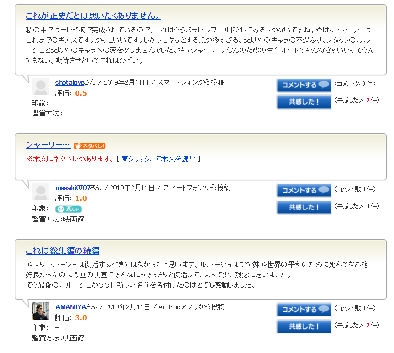 映画网站上的日本观众评价: