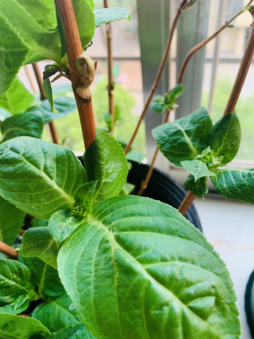 我的无尽夏,总共有十几个花苞了,但为什么老枝上的叶子长不大呢