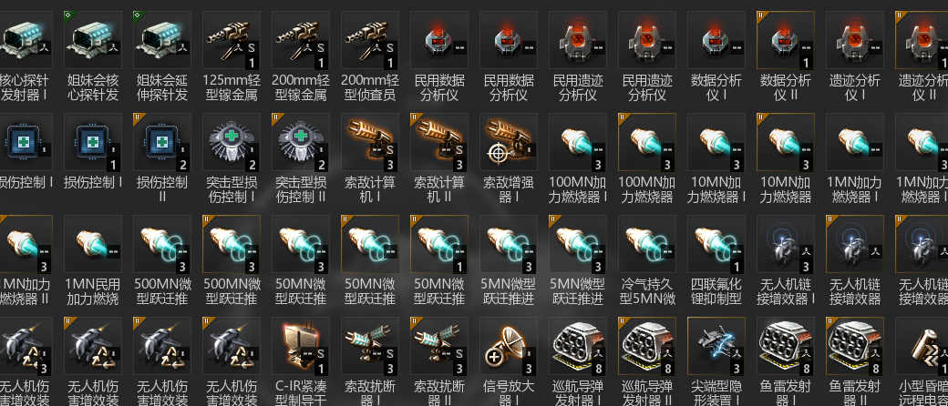 全是商城货,也就是我目前能找到的最好的配件了,好在我现在做任务等级都不高,我想配个扫描的中白(扫出来跟几个朋友一起去),巴盖斯我想做任务用(换口味用,老是用一个船有点腻)