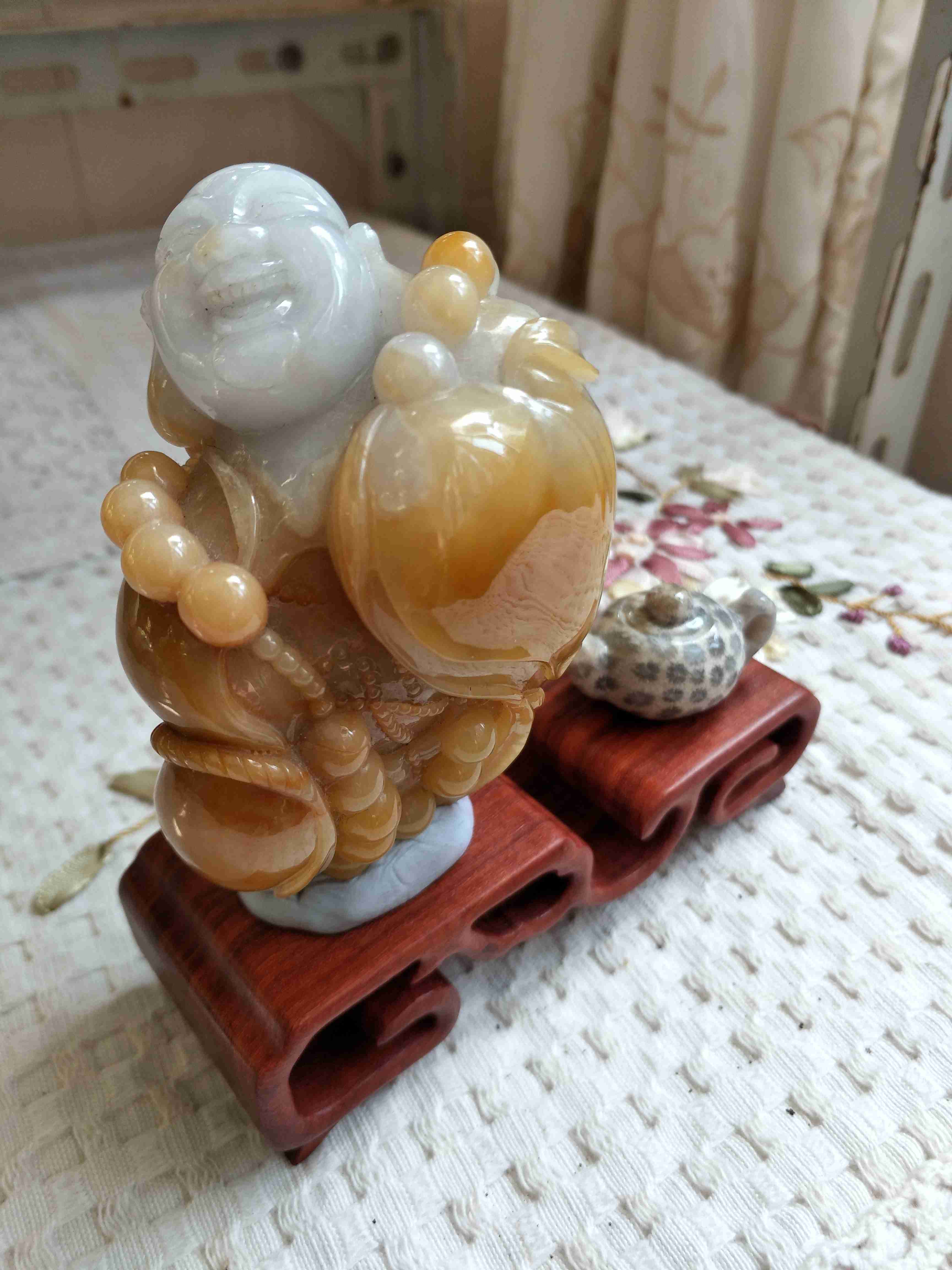 哪就叫和尚吧,我这可是老坑,260克,巧雕,黄色伽沙,没有可比性。