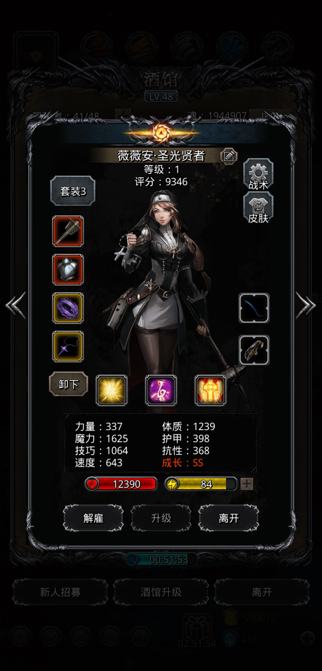圣光奶2700+,神官3900+。现在最多能提升树枝,树枝魔力才285,但是威力475,接近上限了。
