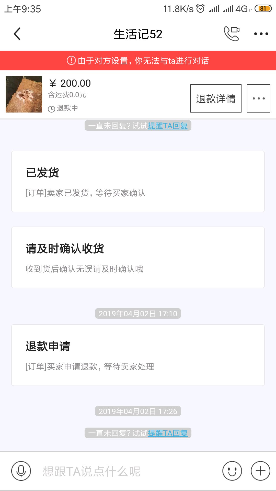 纠纷,挂一个人,到货状态不对死亡以后拉黑,咸鱼拒绝退款!