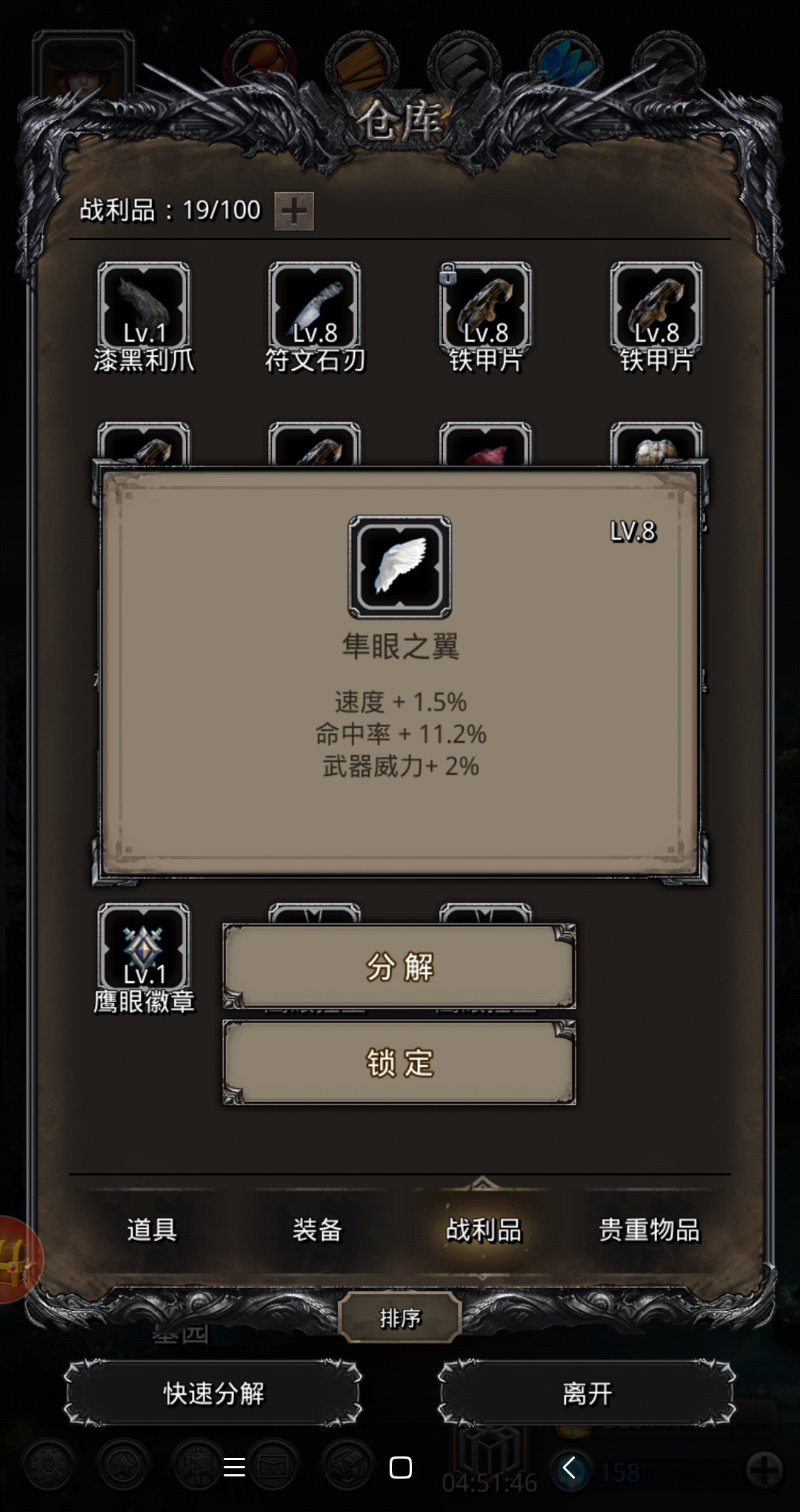 其实如果8-9命中的战利品不多,鹰眼还是更好,这个就是容易出10+的超极品,但是我升了5-6个下来,也就出一个8.5能用的。