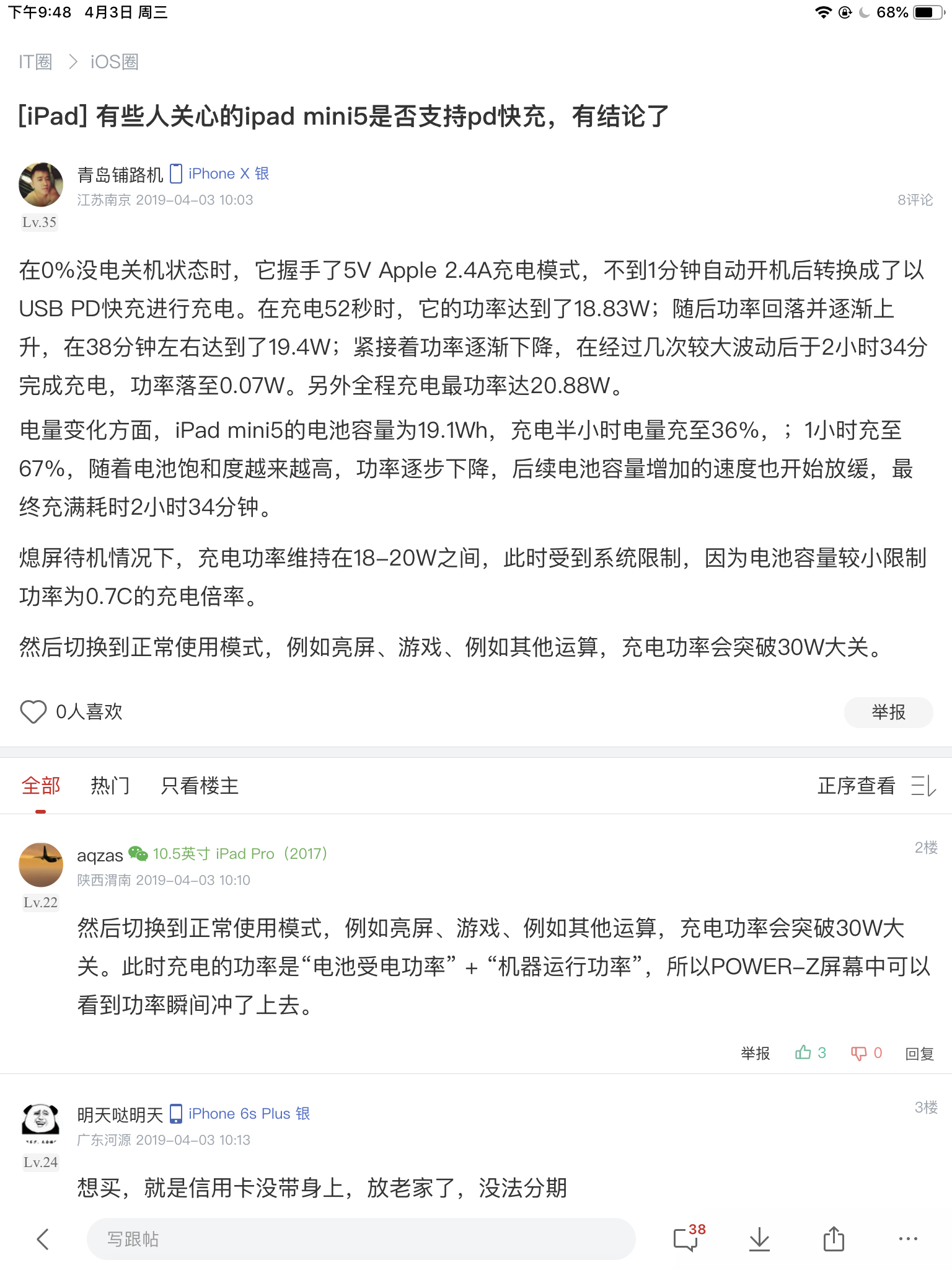 之前有个吧友测试的95分钟充满 PD的