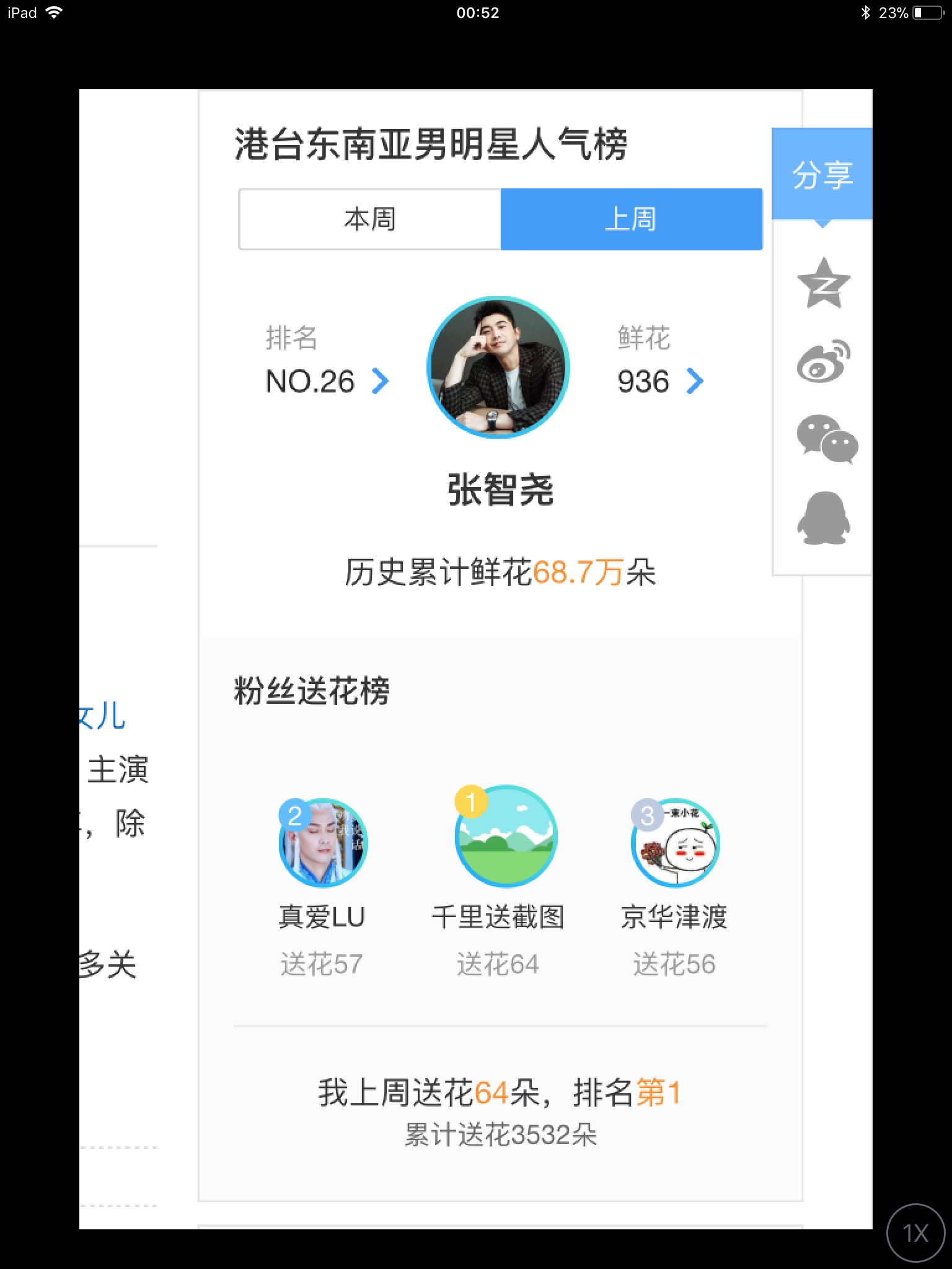 3、在帖子所有登记的截图里面,奖励TOP40的粉丝,每个人奖励其上周送花量的15%;