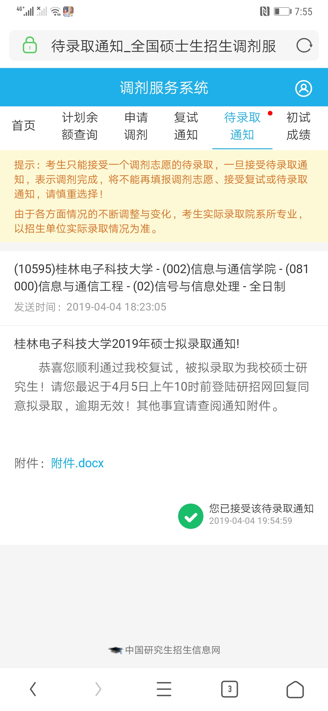 说错了,调剂的志愿就不是在这个调剂上面发通知