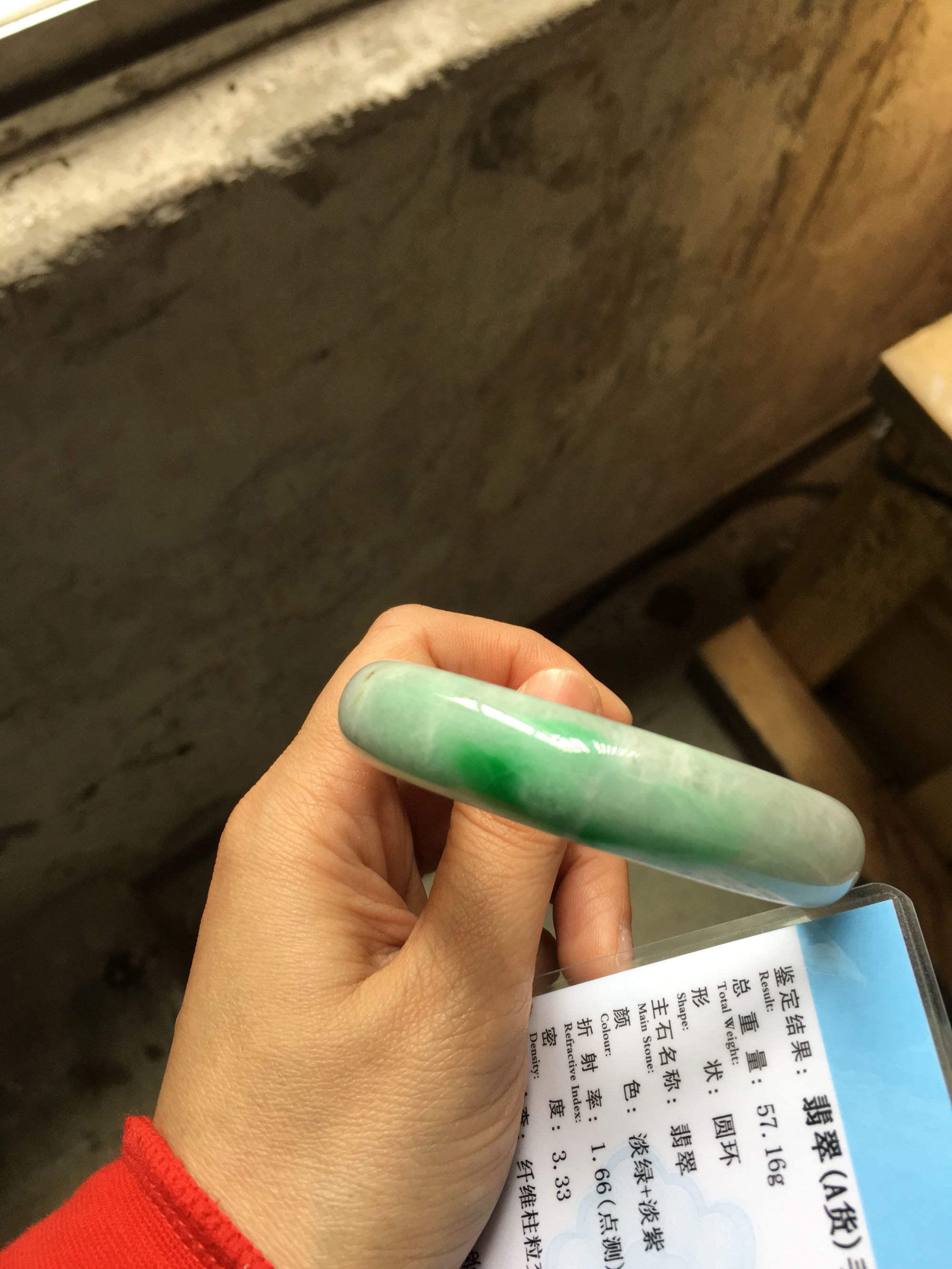 好的,就是我这里是小地方,也不知道去哪里检,就想大家帮看看。证书上的镯子还是能看出和实物是同一个的,没问题应该就没问题了,谢谢您了