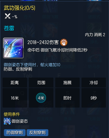 核心爆发技能在施展苍天BUFF后可以使用,技能系数8.9御剑加成2.9