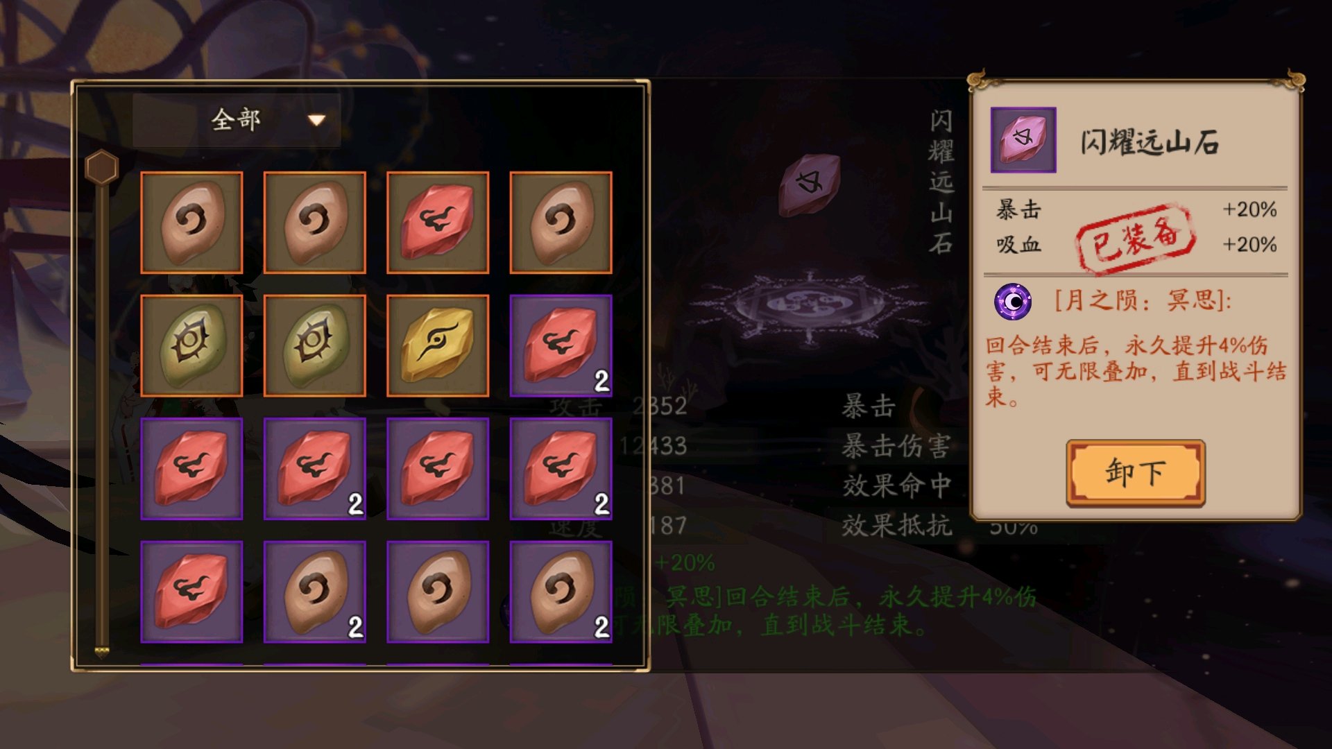 我没专门去刷石头,见识的少(别人帖子里的减2鬼火的就没见过)。下图这个被动是不是很厉害?我给丑女用的。大家有没有更好的石头,分享推荐一下吧~