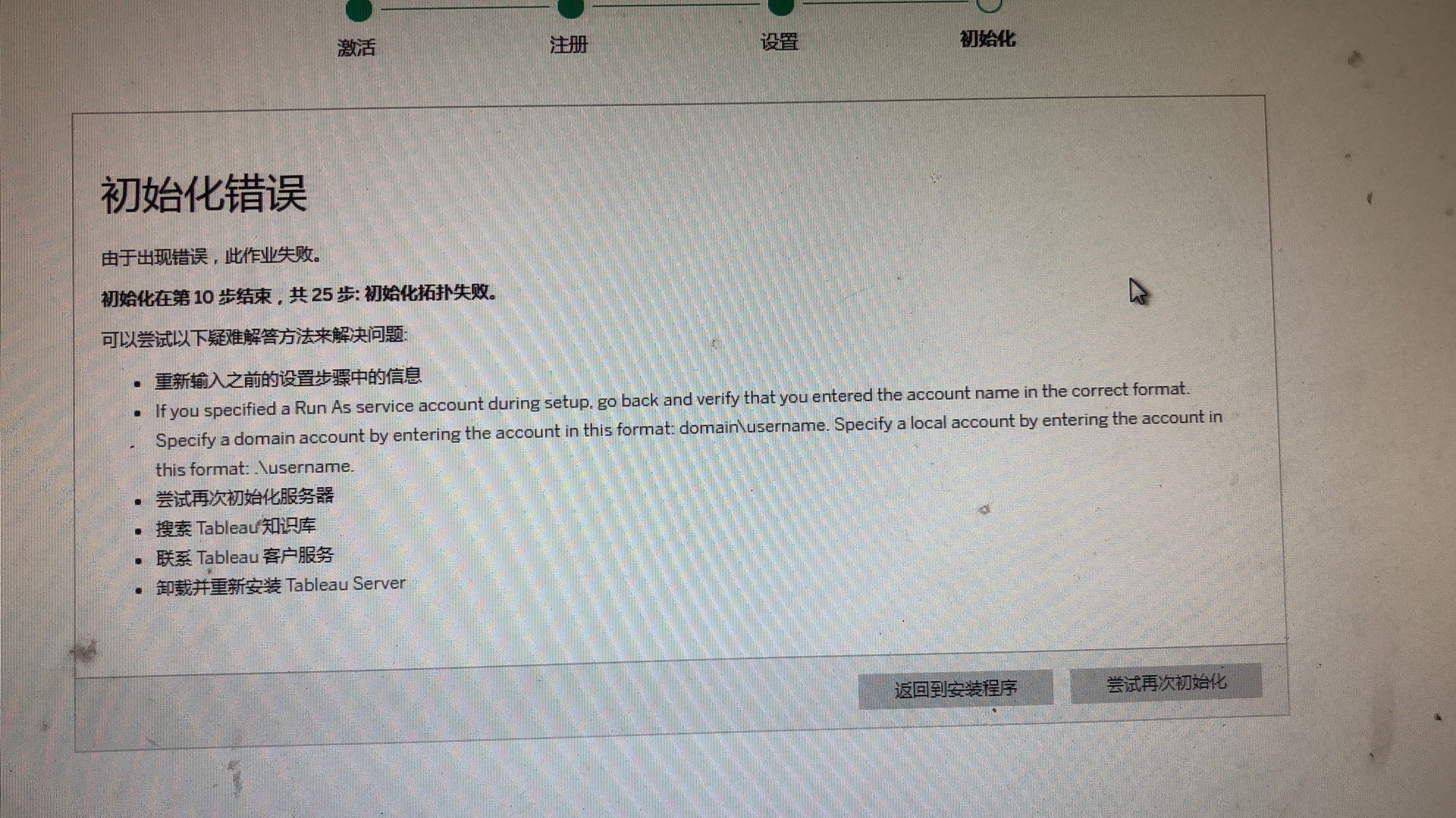 初始化在第10步失败