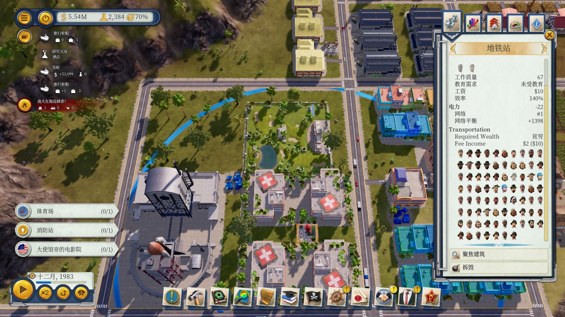 没修地铁前靠着公交工厂出勤率还是蛮高的,建完地铁站后一看工厂显示工人全在地铁站中 一怒之下拆掉好多