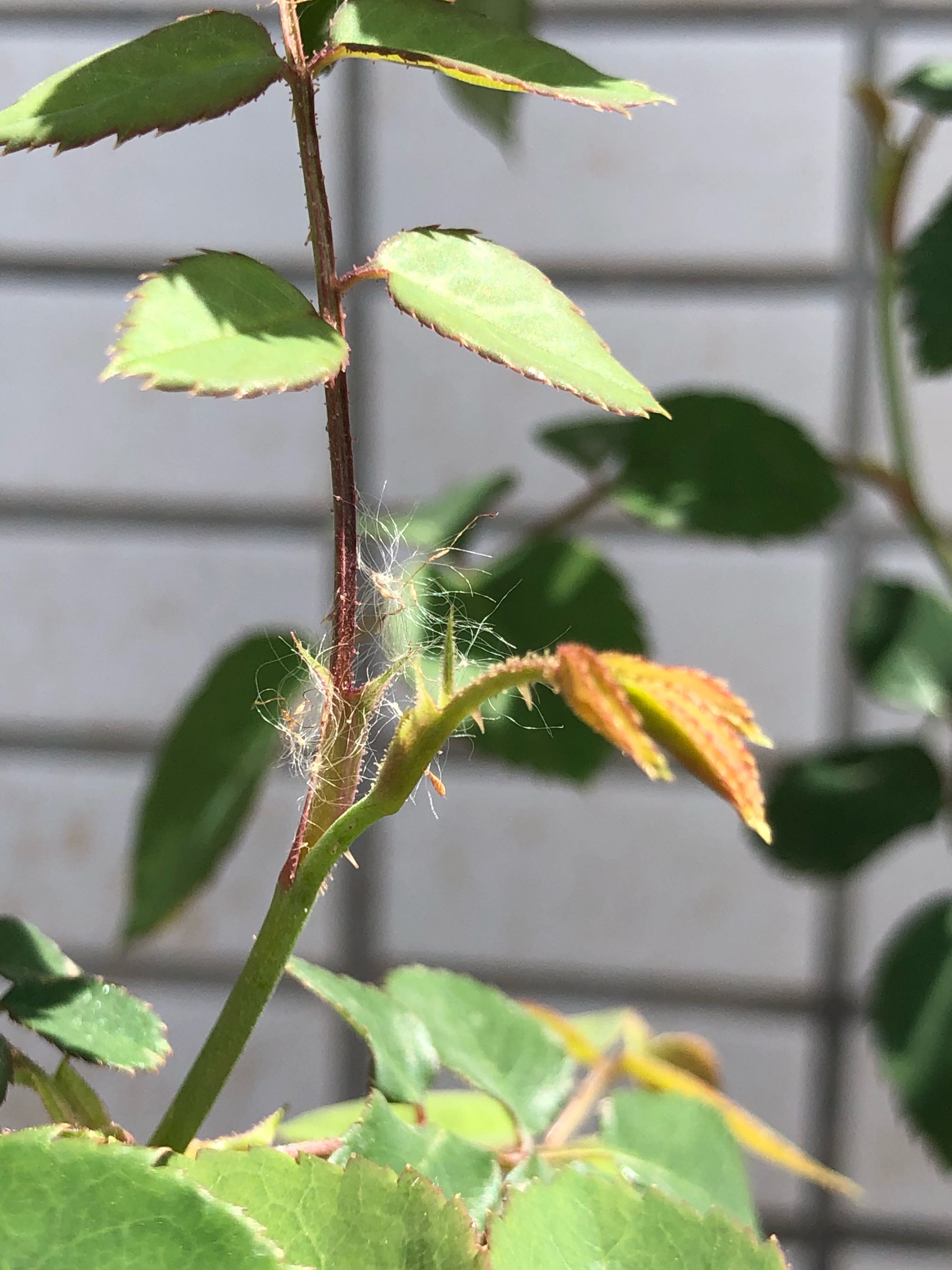前几天刚在花市买的,水杯大的盆。回来之后就移栽进一加仑盆里。现在突然发现杆子上有黑褐色斑点。不晓得扎个回事