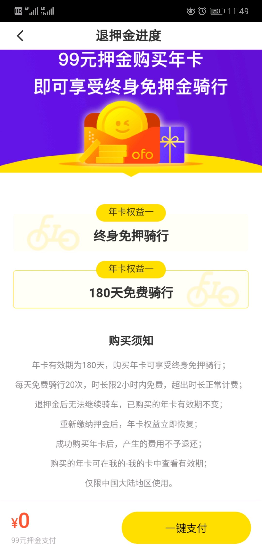 我已经放弃退押金了,抱着能骑一次是一次的想法把押金变成那个180天年卡行不,这个有没有坑啊,起码还能起一起