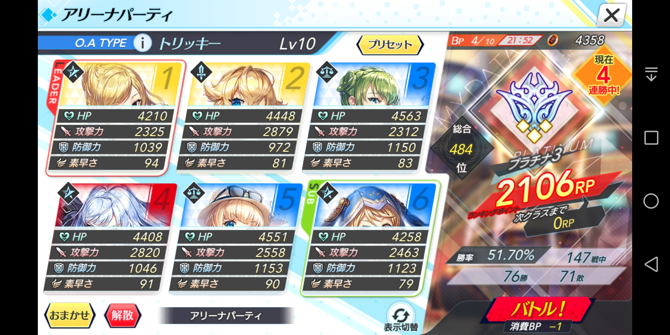 现在环境也不太好上分,需要不停地调换人物。这个是我这个星期的,前期送了60盘到1100,正式打输了11盘。打早了,厉害的还有好多在1850到2000之间,本来应该今天晚上2100,排名600左右。1860的时候被一个人全五星五破连续打下来三次。现在克制撒钱的也多起来了,副团长的全体清buff,绵羊的绝杀,搞得我上了两个青角色。还有楼主你该去打点圣杯升级oa