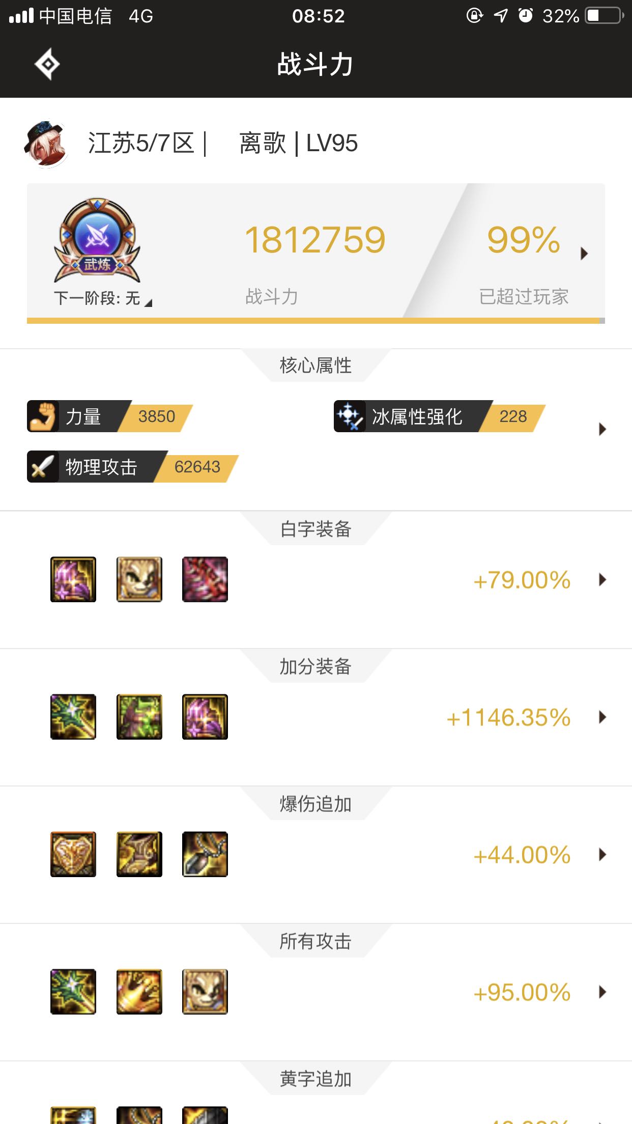 我的上衣这周才够升级,升了能加126力和50攻击,估计升超3破200一点问题都没有