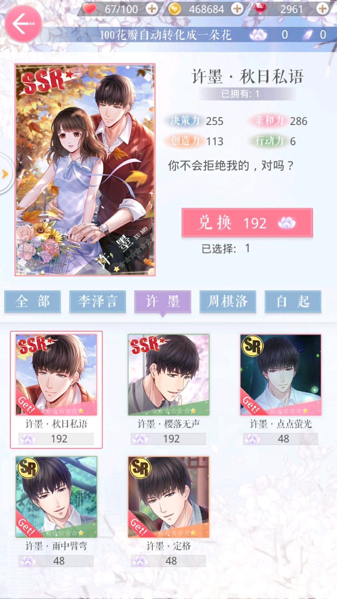 好慘…我還差20花就可以換我的第一張四季卡秋日了,到時候一定看十次八次