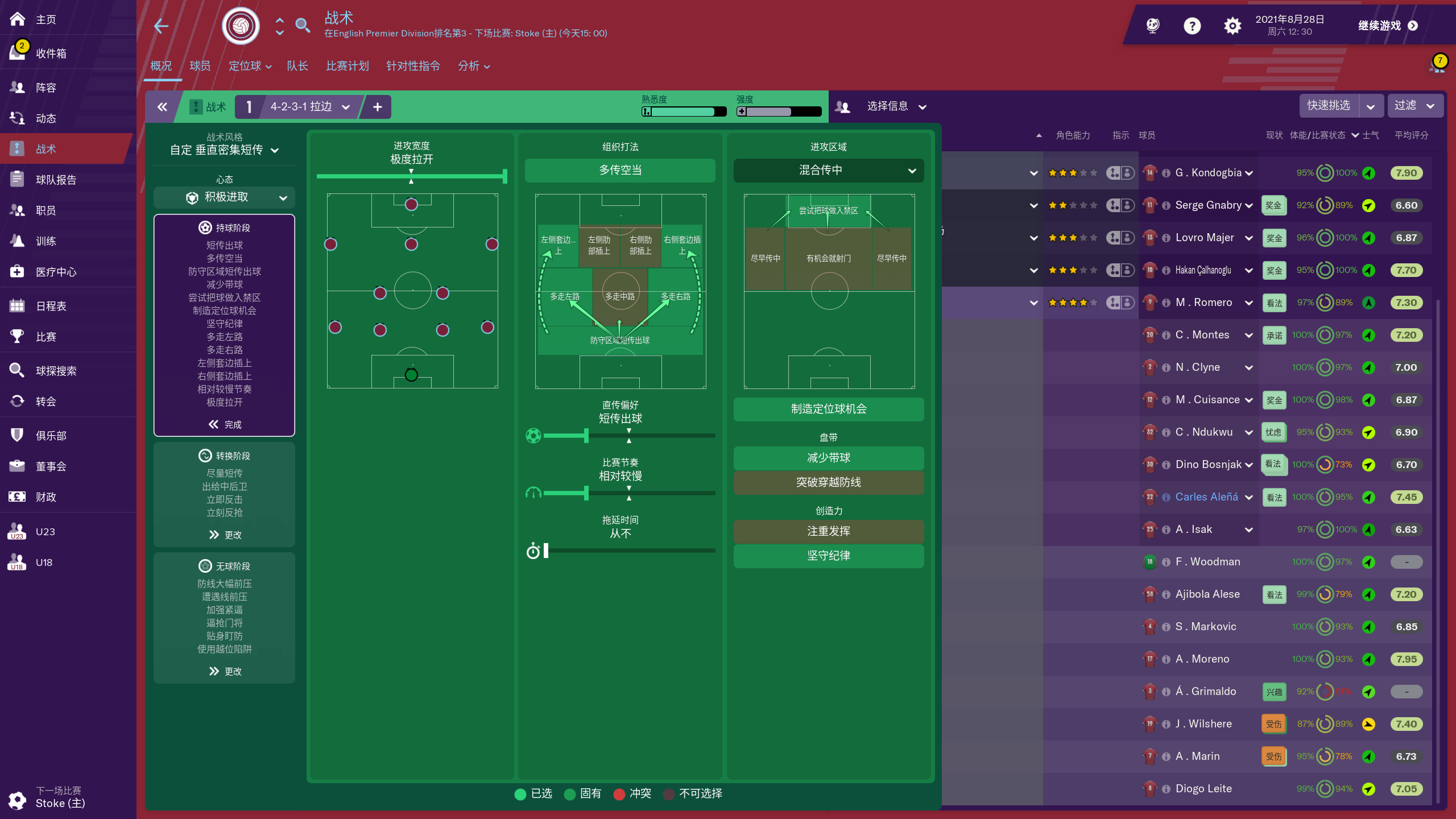 这套战术,基于4231阵型开发,目前我测试使用的是一个老档,西汉姆,平均ca150左右(前3赛季,一个联赛冠军,2个欧冠,1个足总杯),新阵型第4赛季使用测试中,目前开局6连胜,压制效果惊人,不过还在测试,半个赛季测试稳定以后,做成战术包供大家下载。