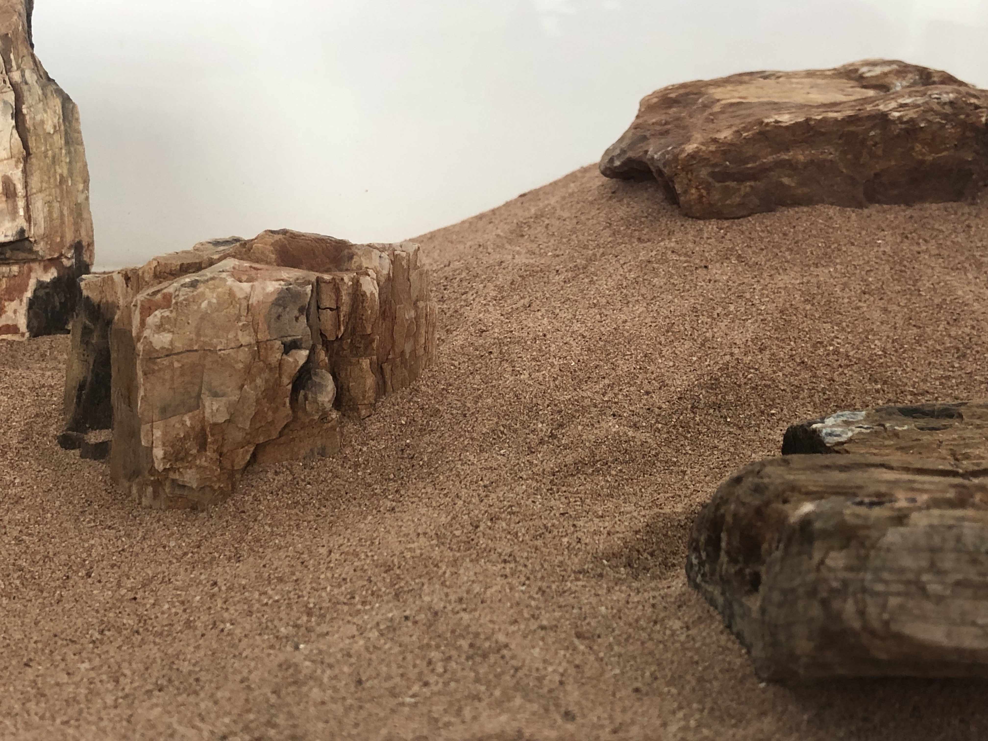 鱼缸里倒上沙子,摆上石头,嘿嘿,沙漠风格搞定
