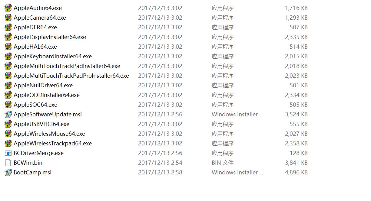 三:换回mac显卡,引导启动win10,下载bootcamp支持win10驱动包,点击安装,显示不支持此机型!关闭,直接解压安装包,得到一堆文件夹,打开win文件夹,打开apple文件夹,仅安装此文件夹驱动