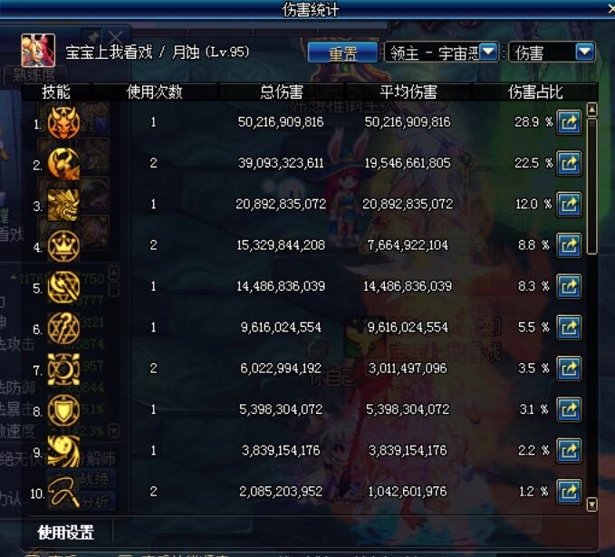 这精灵王更是可怕,伤害都赶超2觉了,占比达到了可怕的15%