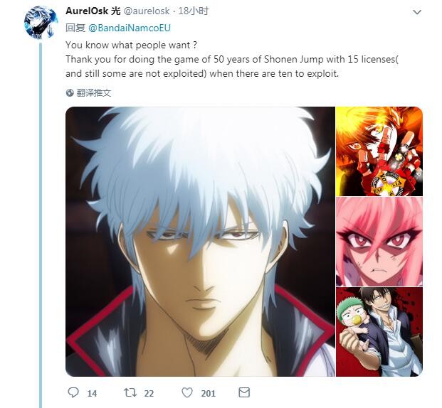 不过玩家们似乎对本作目前加入的角色依然不太满意,官推下最热门的评论是粉丝在请愿制作组能为游戏加入更多漫画经典角色,比如呼声超高的坂田银时(《银魂》)、沢田纲吉(《家庭教师》)、男鹿辰巳与小贝鲁(《恶魔奶爸》)等等。