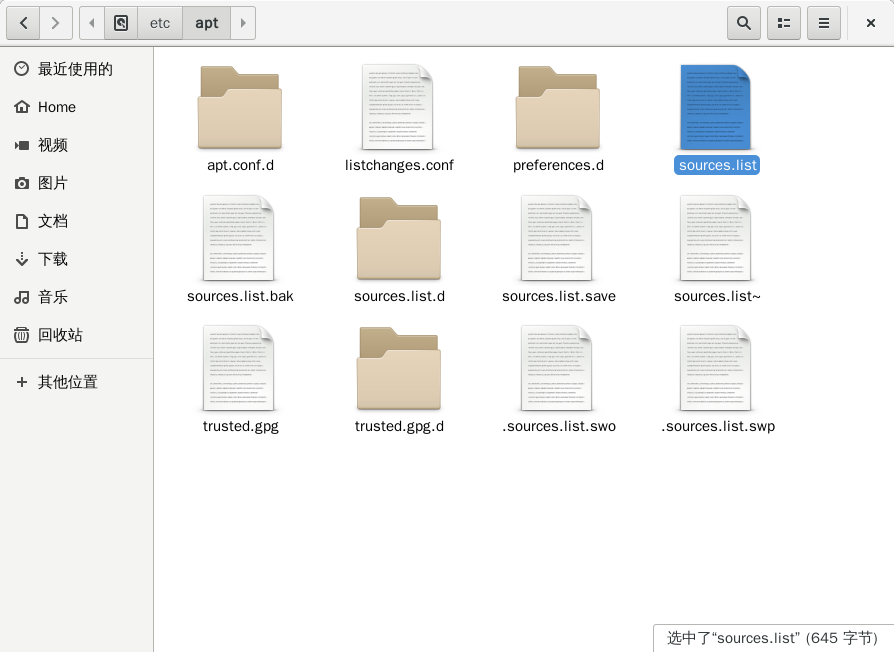 用gedit搜索不到/etc/apt/sources.list 只搜索到了/etc/apt/sources.list.d
