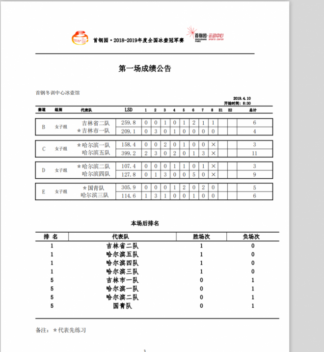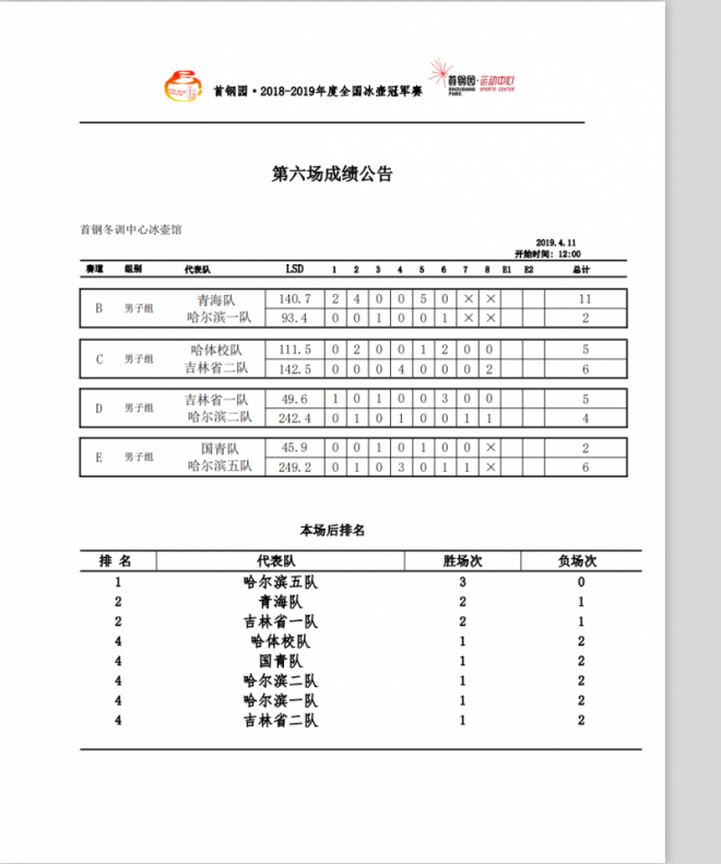 2018-2019年度全国冰壶冠军赛_赛果