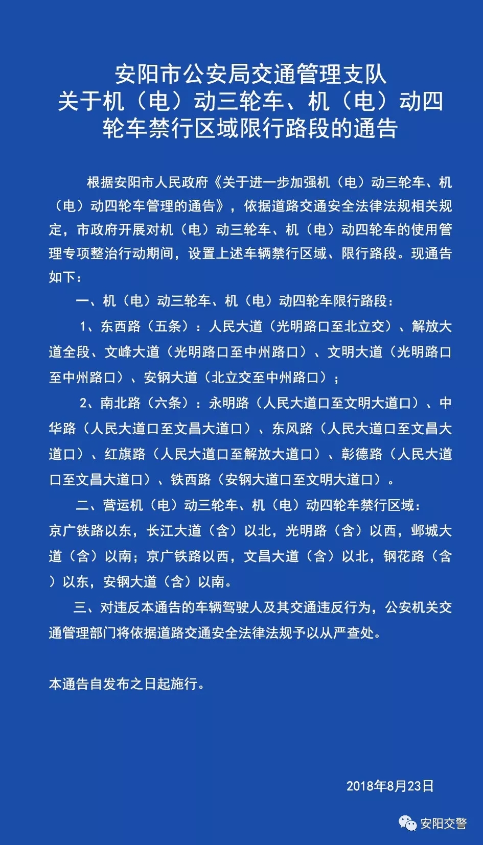 这个区域就范围就大了,(附图片一张)我上班的地方是防水公司,主要工作就是开着公司的电动三轮去给客户送货,怎么就适用于营运车辆范围呢?大神给分析一下,帮忙好好给我梳理一下,谢谢,还有下图的这个通告是2018年的,现在有没有关于三轮车进行的最新通告呢?