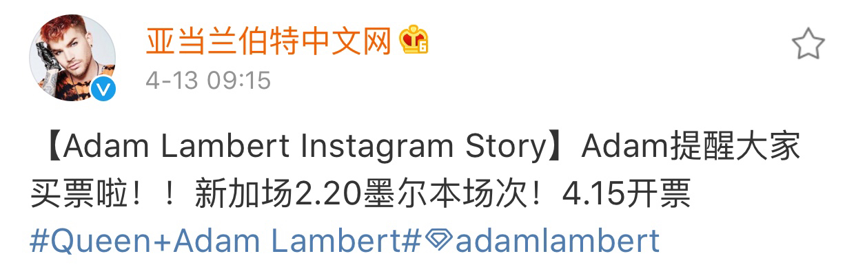 【190409-190413】Adam Lambert信息集中