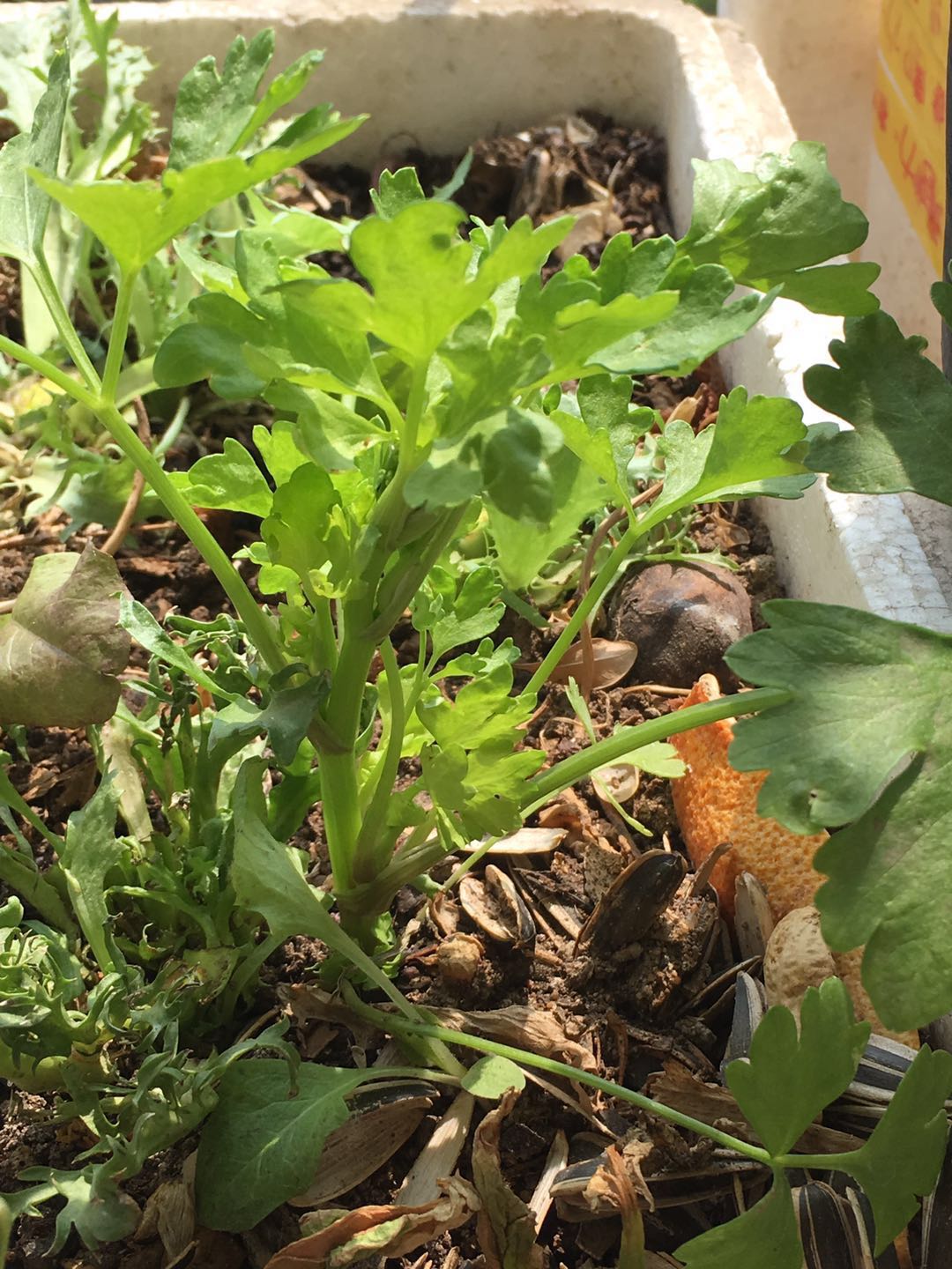总结:这两种也是可以冬天扔外面护栏冻不死的。现在别人还在育苗儿,我已经吃了两顿了!而且,苦菊是可以🈹着吃的。还不生虫子。