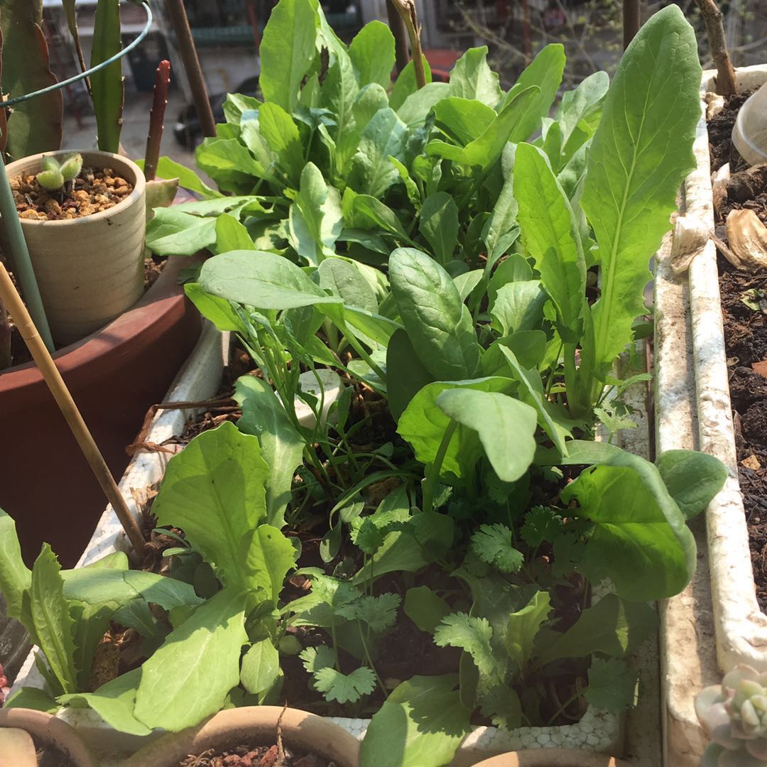 苦菊 蒜苗儿 菠菜都是经过了冬天的,还有几棵油麦菜。